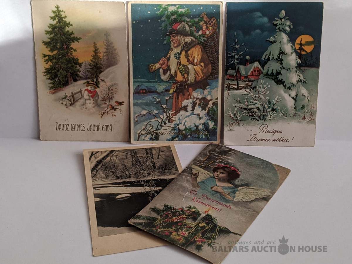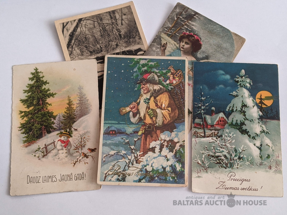 Piecas Senas pastkartes, Ziemassvetki, Jaunais gads, 1916.g., 1929.g., `1931.g.,40-tie gadi