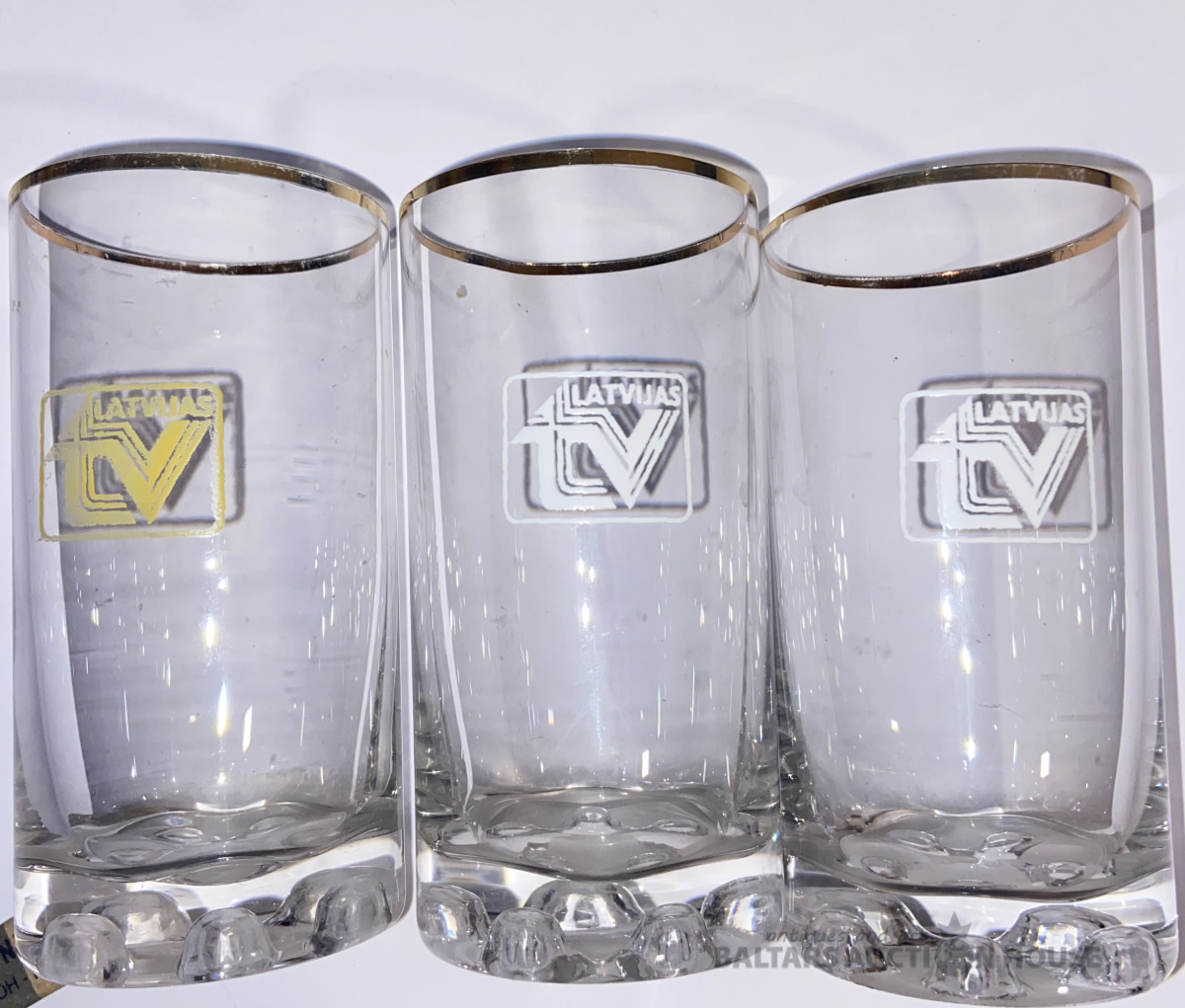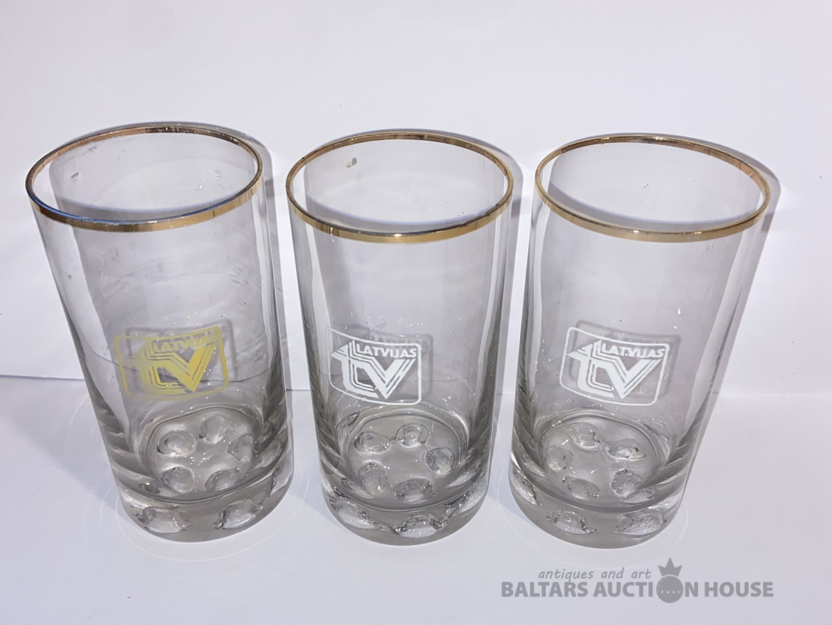 Glāzes “Latvijas TV” H=12.cm Vienai no tām ir defekti iekšējā malā , skatieties fotoattēlu Nr.5-6.
