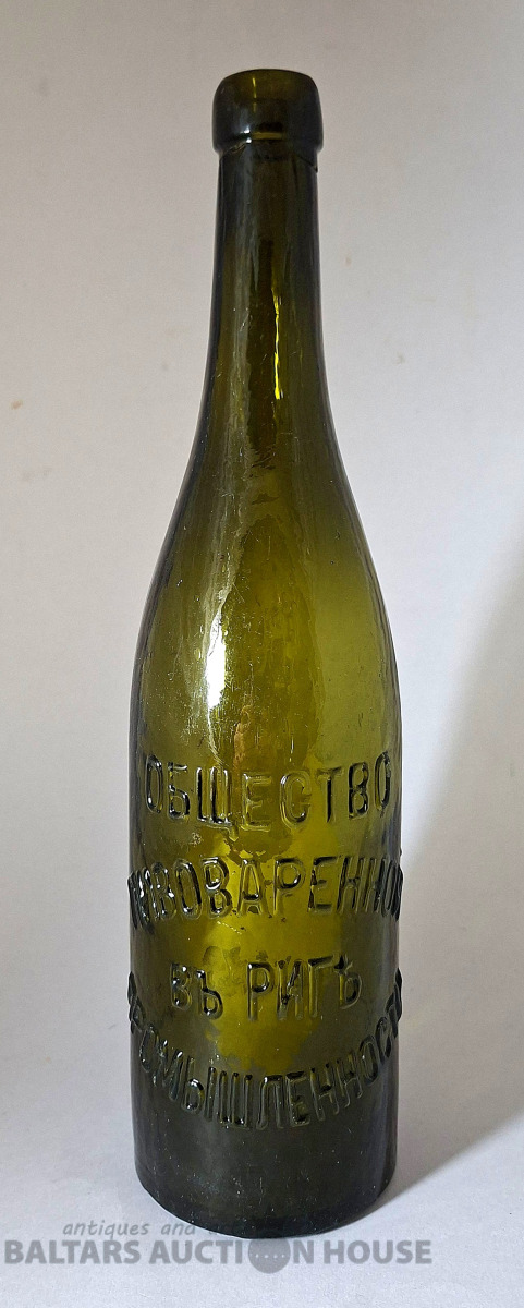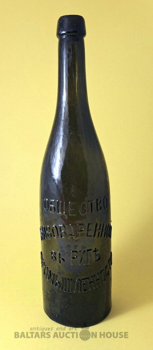 pudele, Alus ražotāju industrijas sabiedrība Rīgā, stikls, Krievijas impērija, 20. gs. sākums, augstums 29 cm.Bez plaisām.