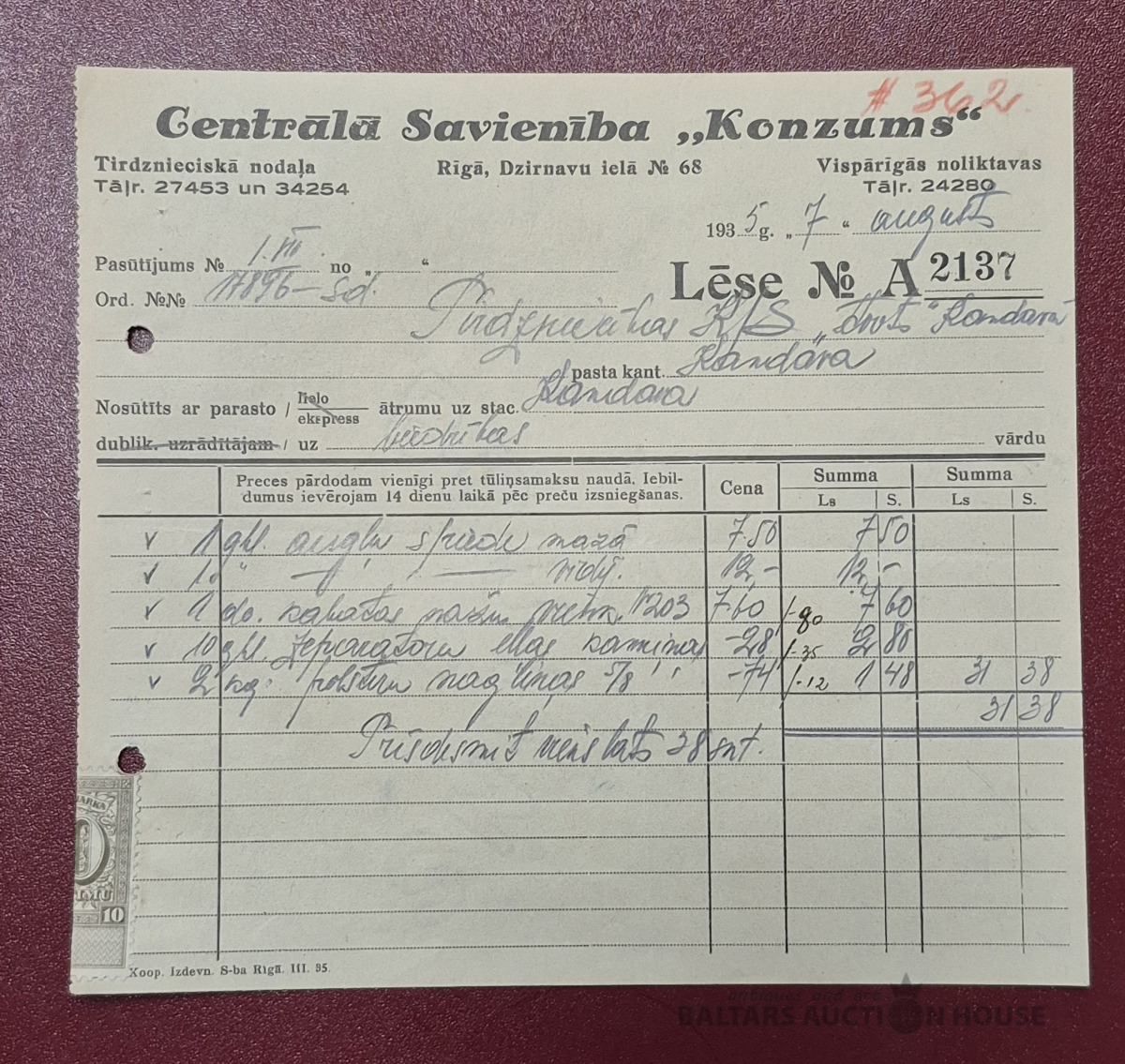 Lēse. Centrālā Savienība "Konzums", 1935g.