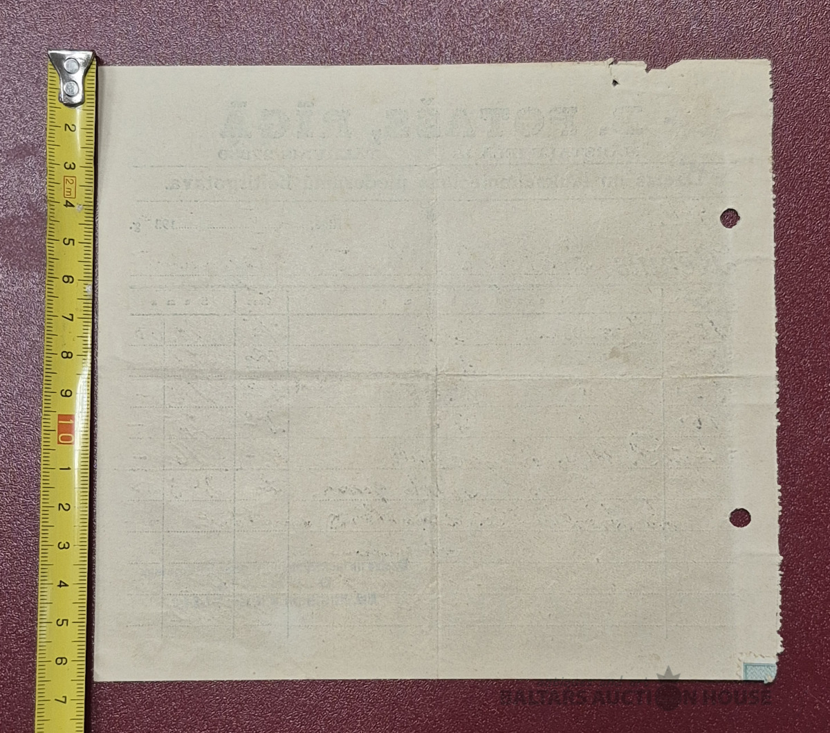 Rēķins. Krievu-Baltijas minerālu eļļas rektifikācijas A/S.