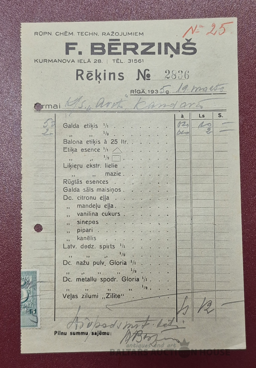 Rēķins. Rūpn.hēm.ražm"F. Bērziņš", 1935g.