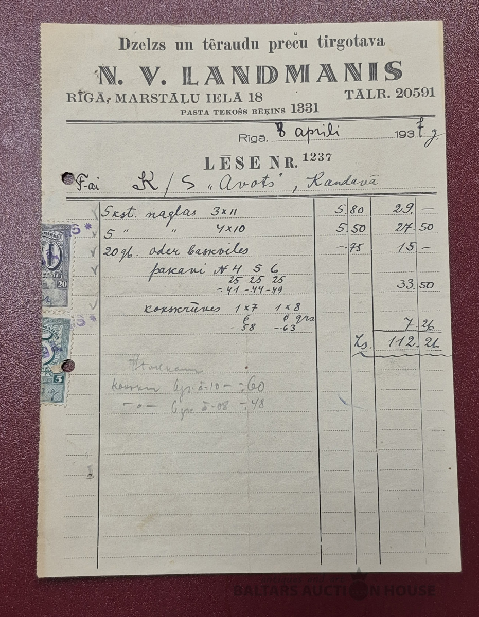 Lēse. Dzelzs un tēraudu preču tirgotava "N. V. Landmanis", 1937g.