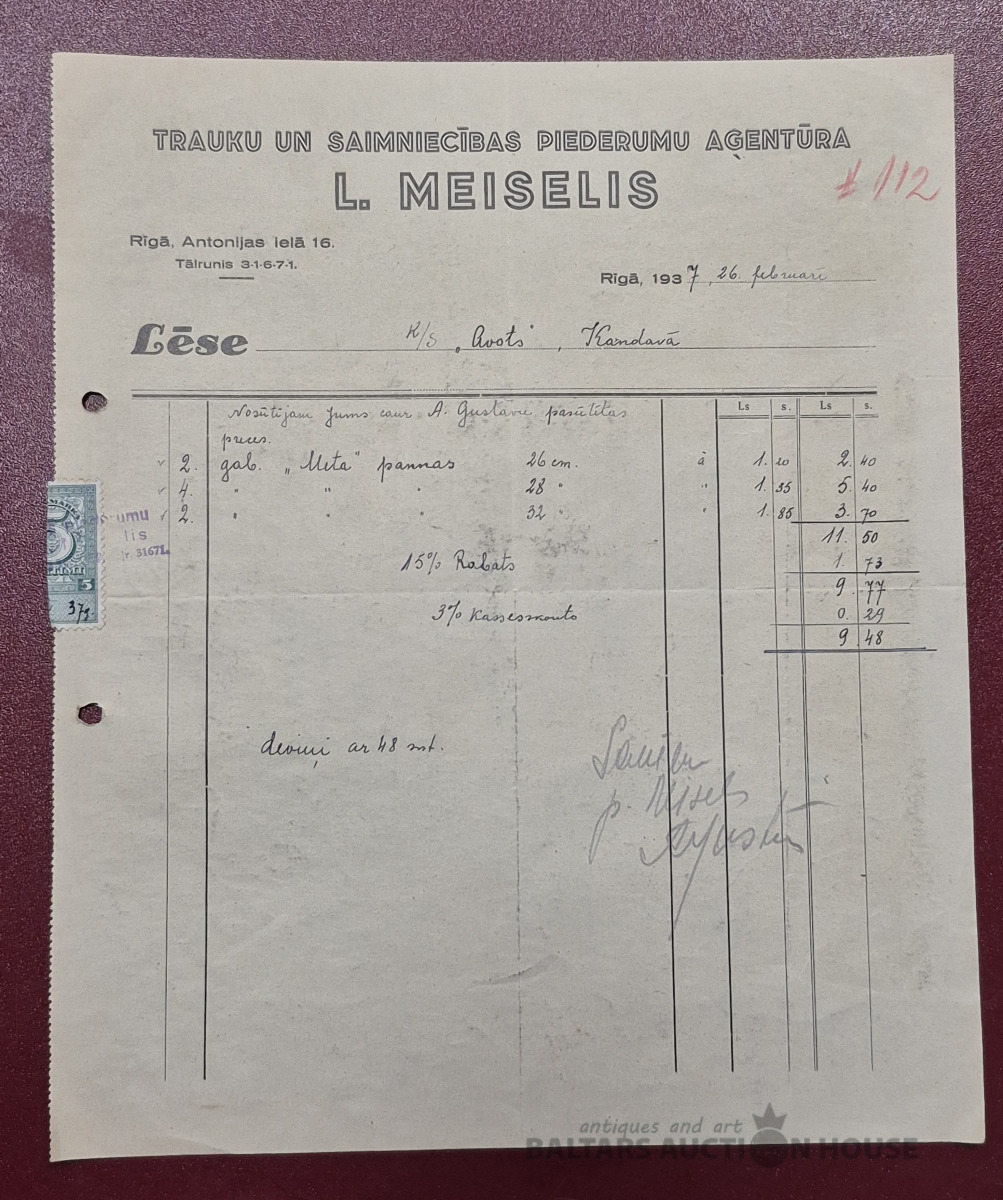 Lēse. Trauku un saimniecības piederumu aģentūra "L. Meiselis", 1937g.