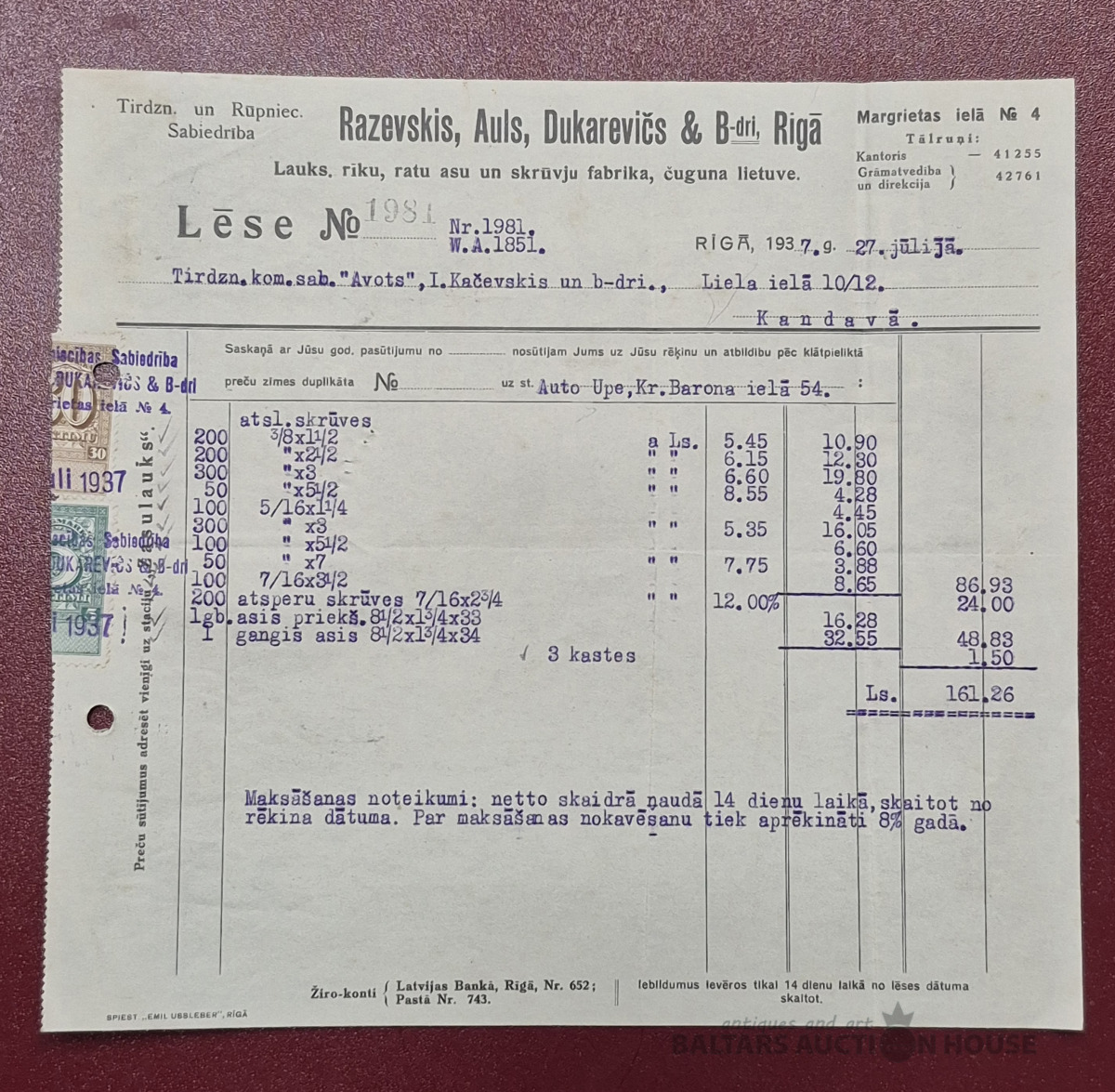 Lēse. Lauks., rīku, ratu un skrūvju fabrika, 1937g.