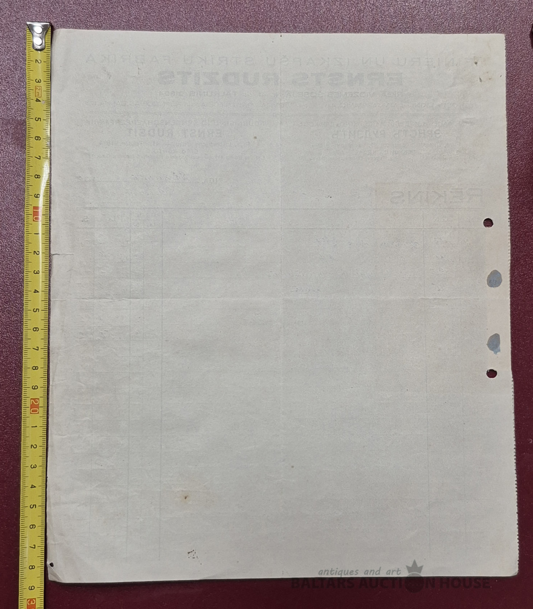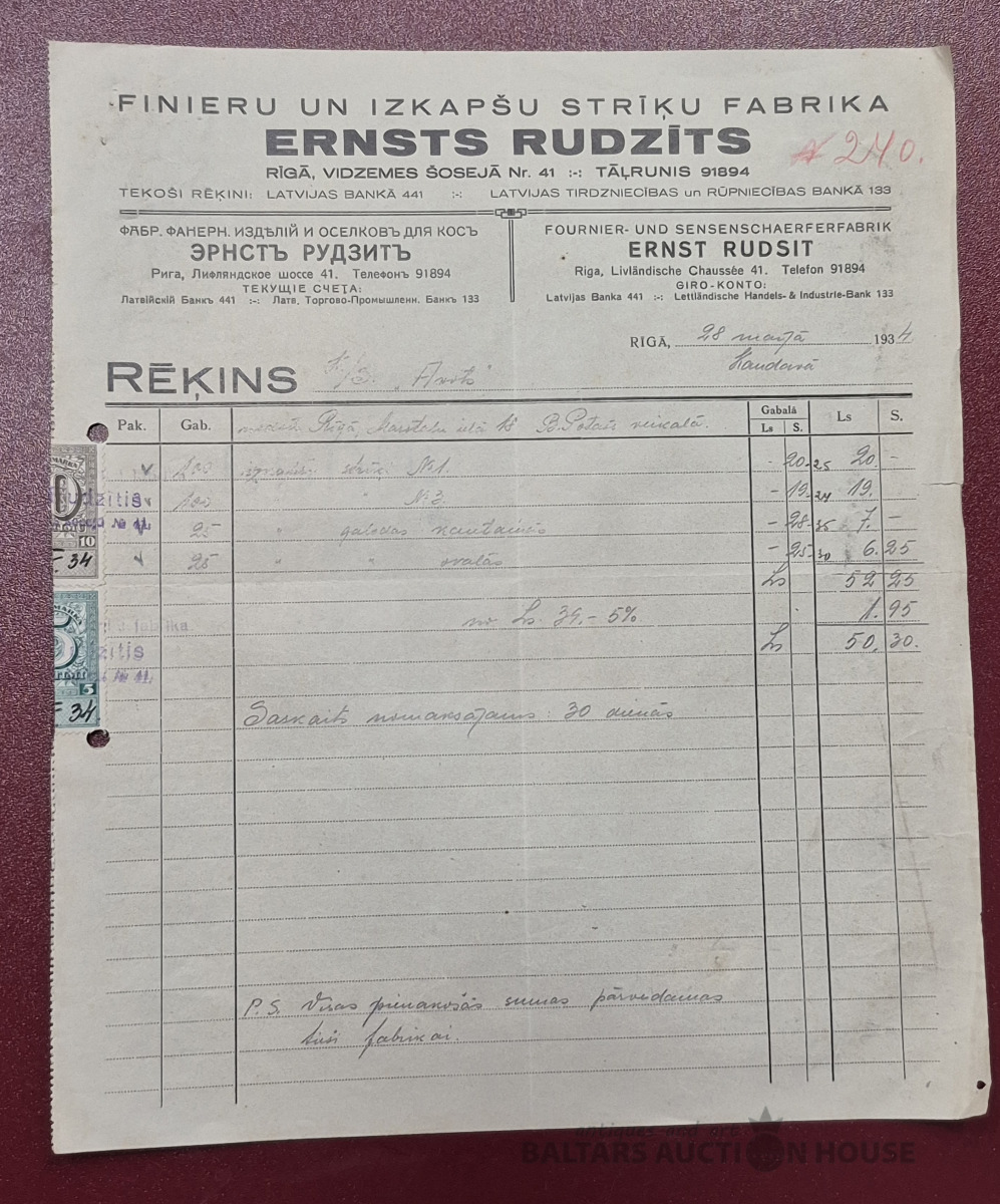 Rēķins. Finieru un izkapšu strīdu fabrika "Ernsts Rudzīts", 1934g.