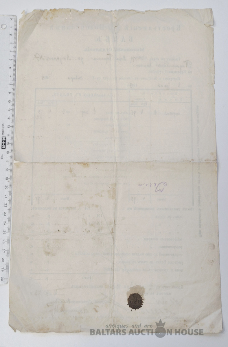 Расчёт по ссуде. Крестьянской Поземельный Банк. Митавский отделение, 1913г.