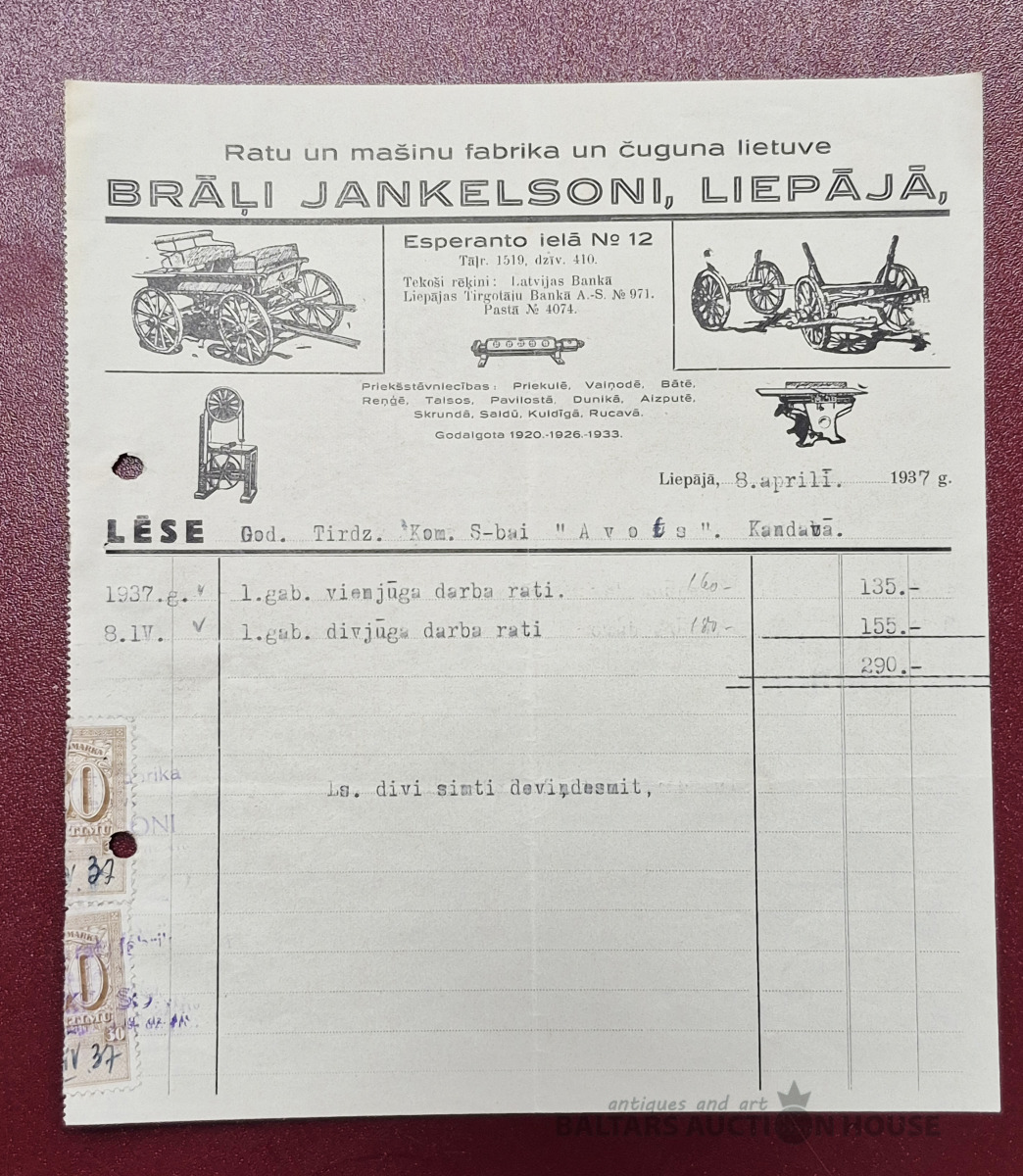 Lēse. Ratu un mašīnu fabrika un čuguna lietuve "Brāļi Jankelsoni", Liepāja, 1937g.