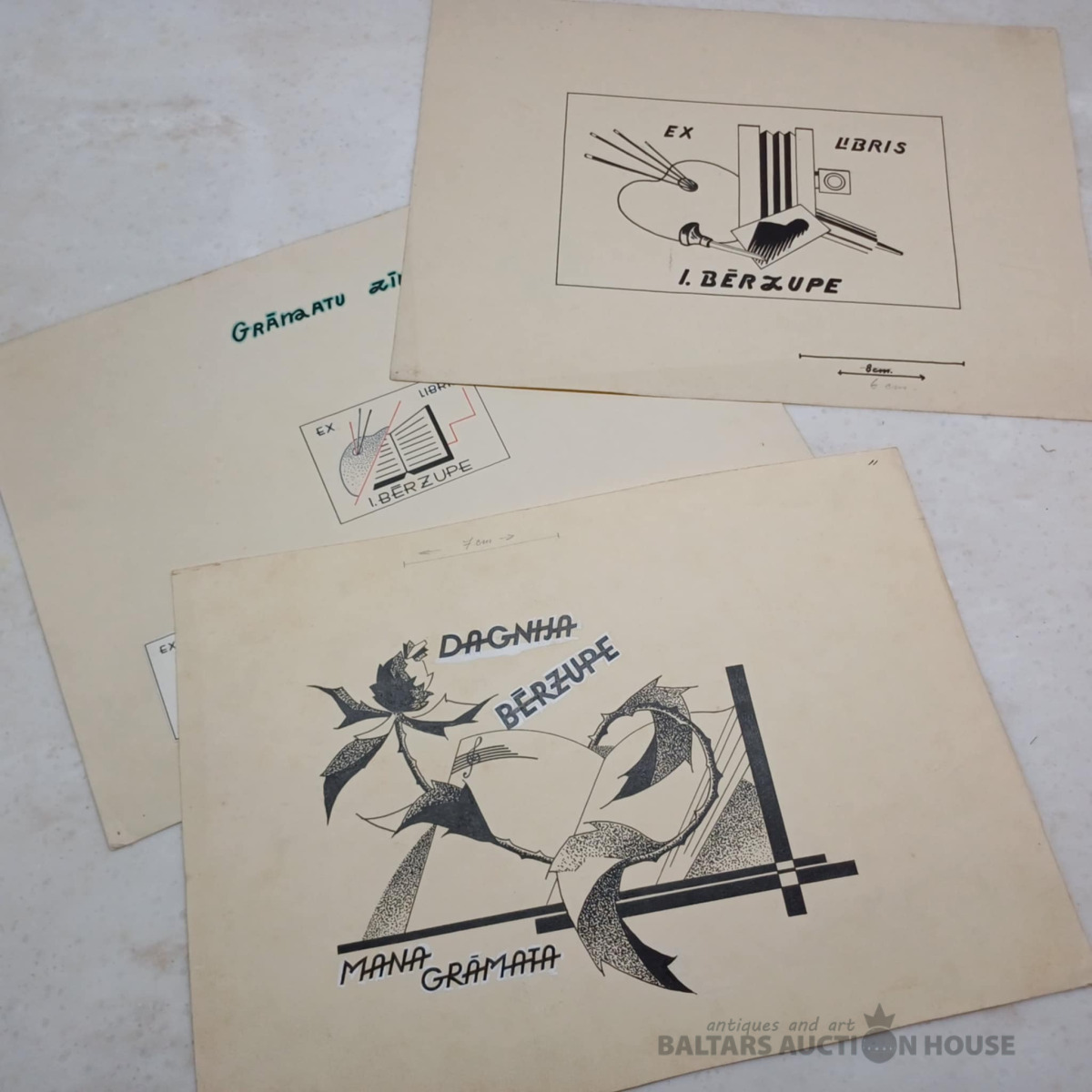 3 ex-libris (oriģinālzīmējumi) 240x350 mm