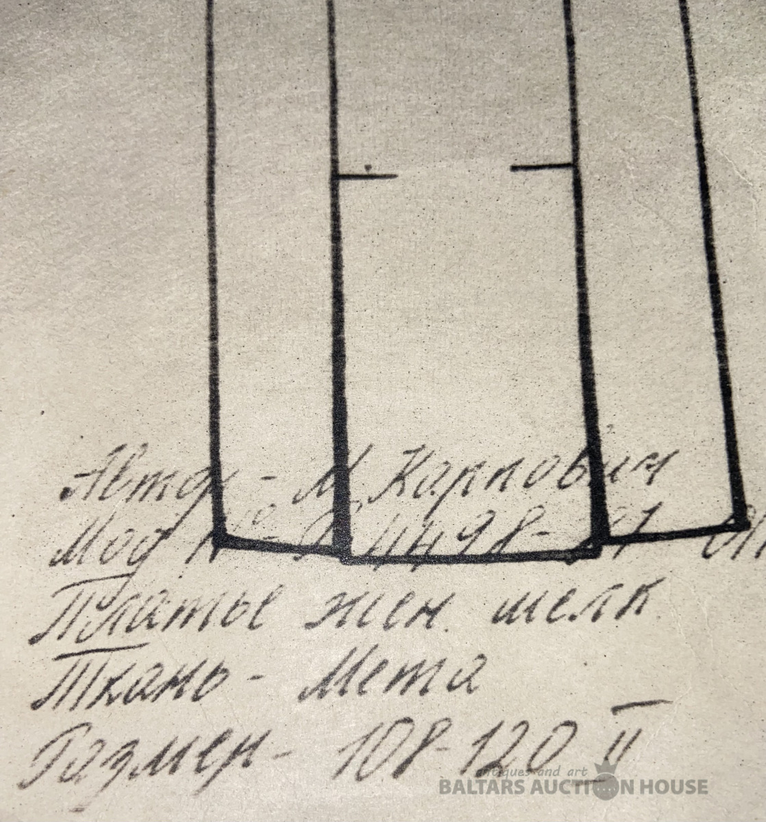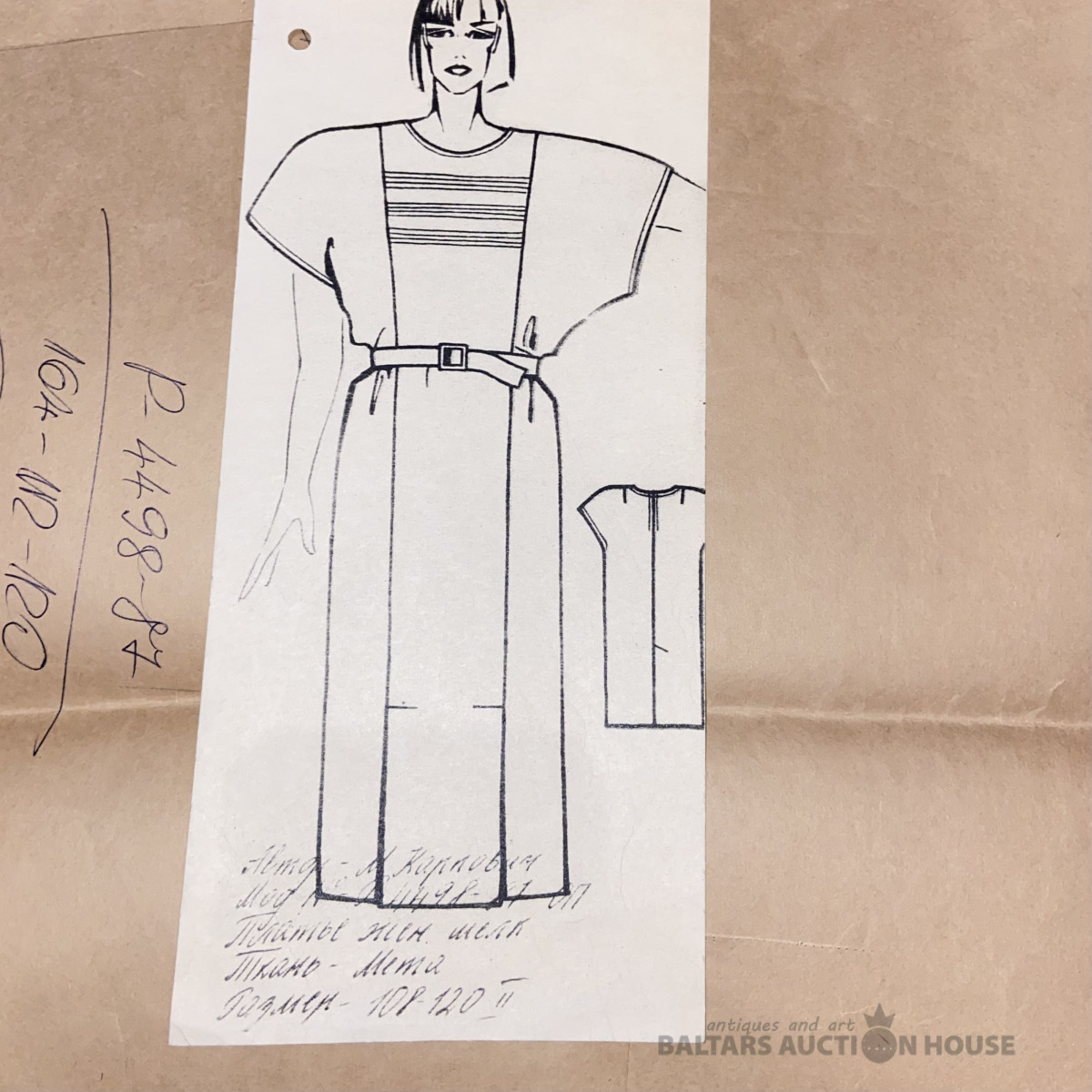 Modeļa skice: sieviešu zīda kleita, 1987. gads, Rīgas Modes nams (Nav zināms, vai visi skices detaļas ir klāt )