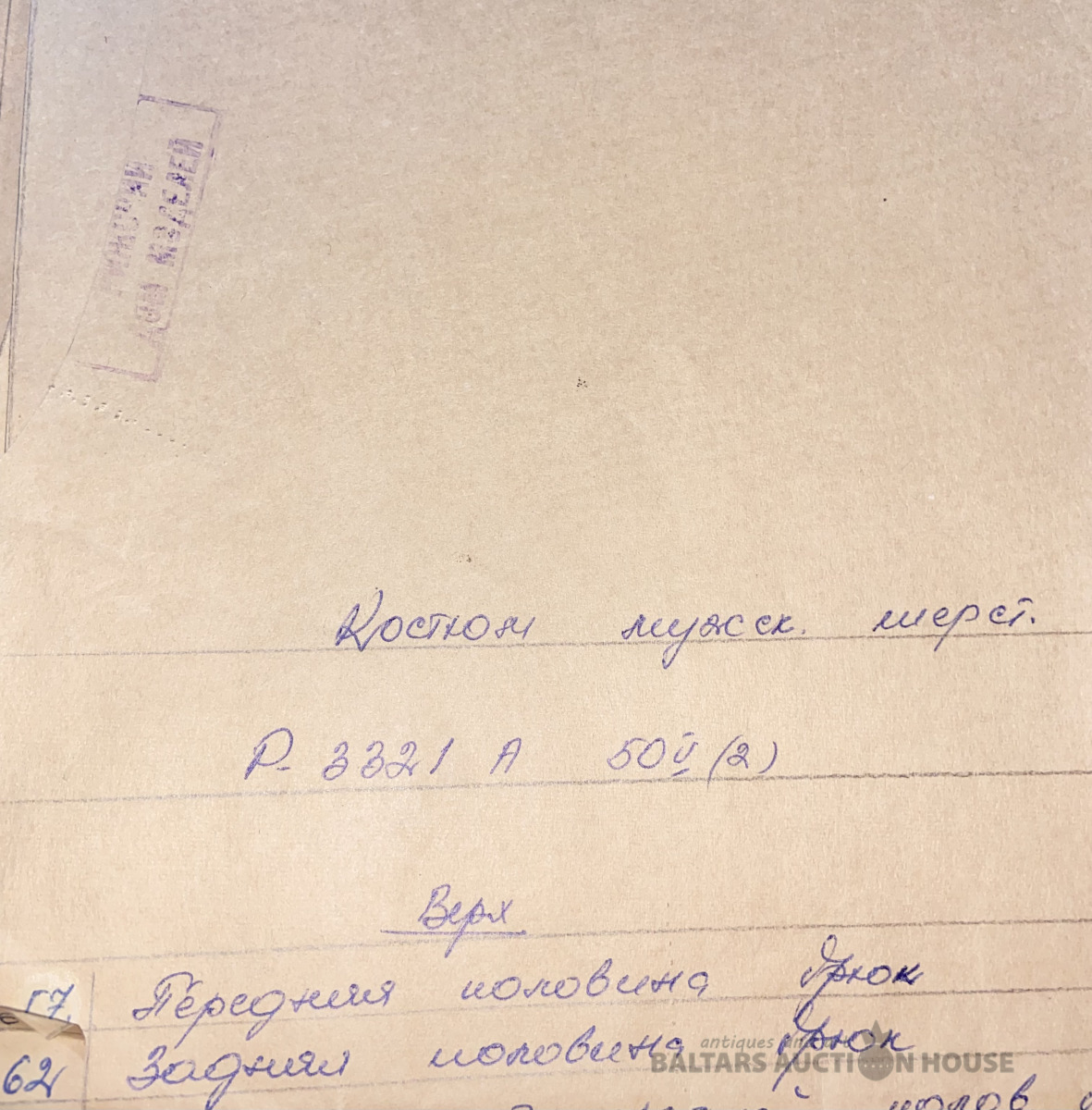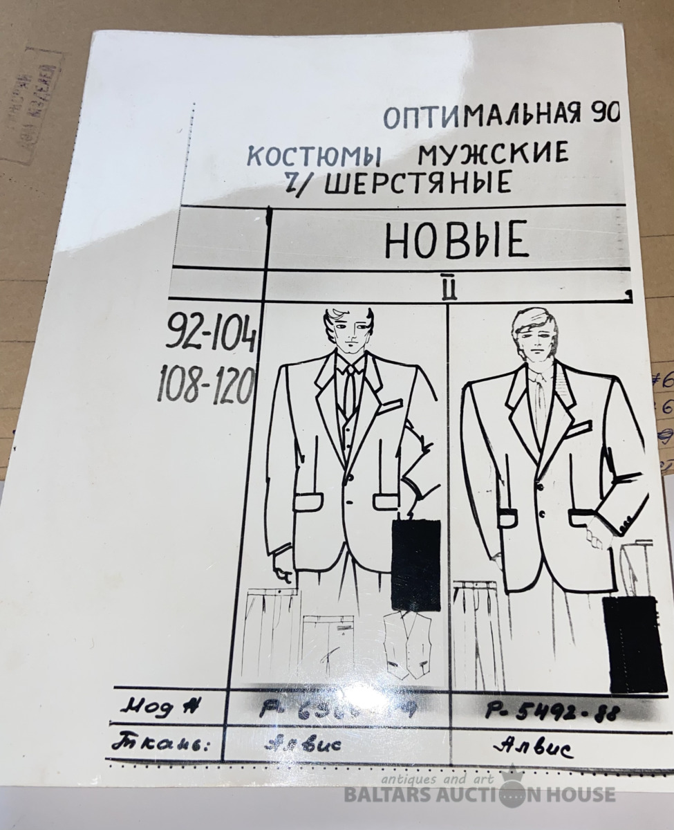 Modeļa skice: vīriešu vilnas uzvalks 1990.gads. Autors: Korns,konstruktors: Strazdiņa. Trūkst skices detaļas.