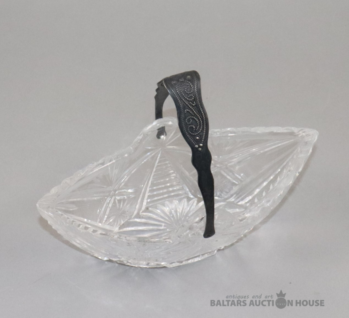 Stikla trauks ar metāla rokturi. 9x10,5x23,5 cm