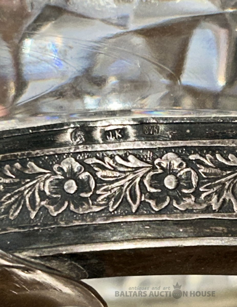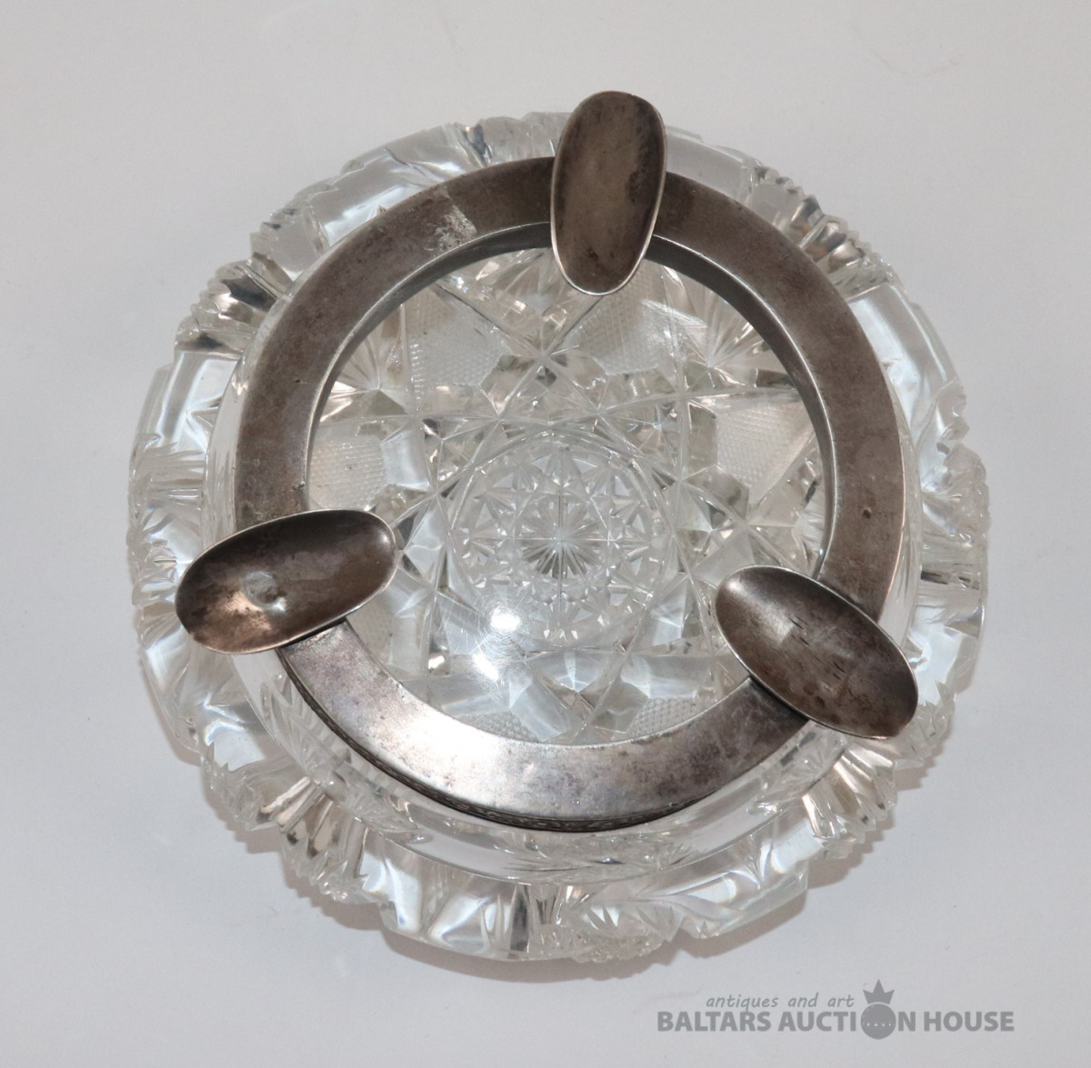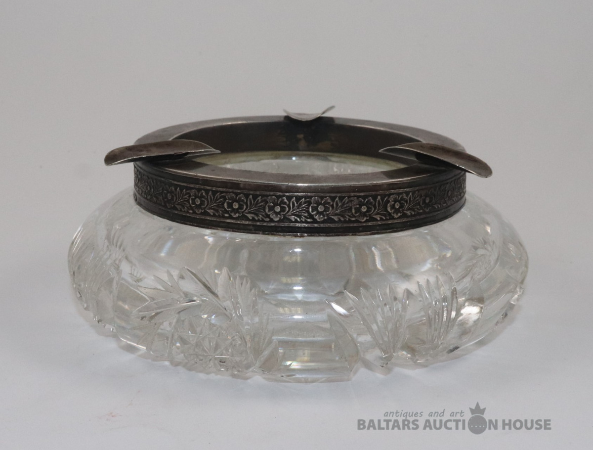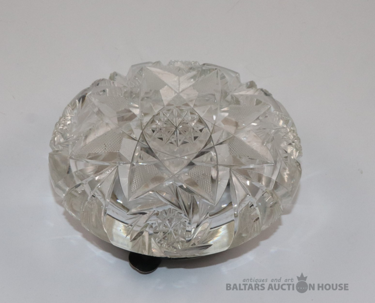 Kristāla pelnu trauks ar sudraba apmali. Latvija, 875 J.K. h=5,7 cm. d=15,2 cm
