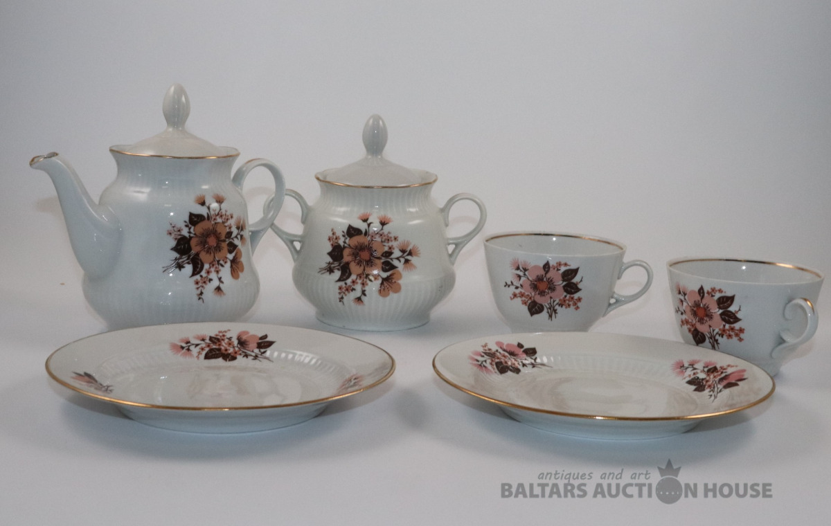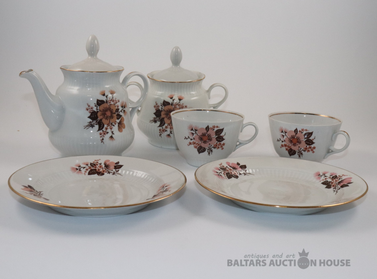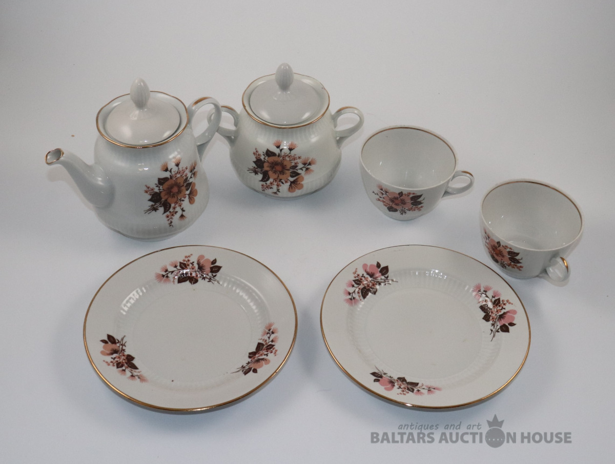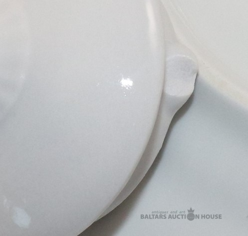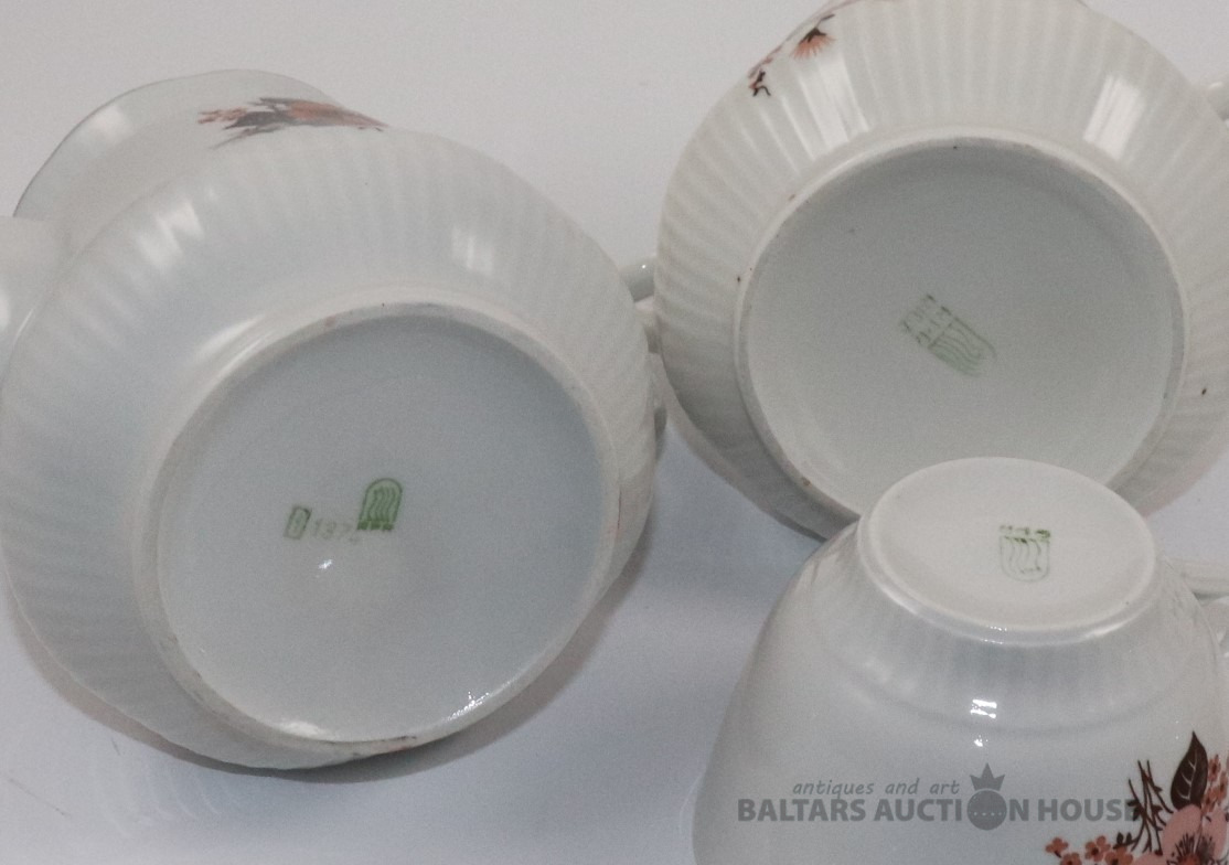 Trauki no servīzes DIĀNA. Porcelāns, zeltījums, dekols. RPR. Vienam vākam nošķēlums, otram rūpniecisks defekts.