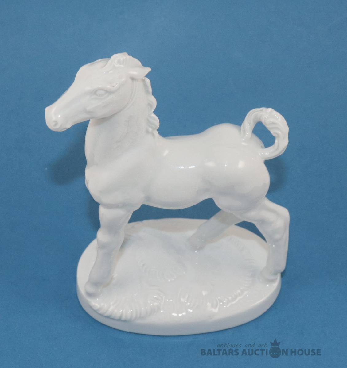 Figūra ZIRGS. Porcelāns, Meisene. h=18,7 cm. Pielīmēta auss.