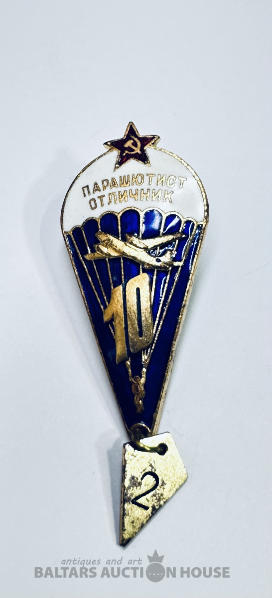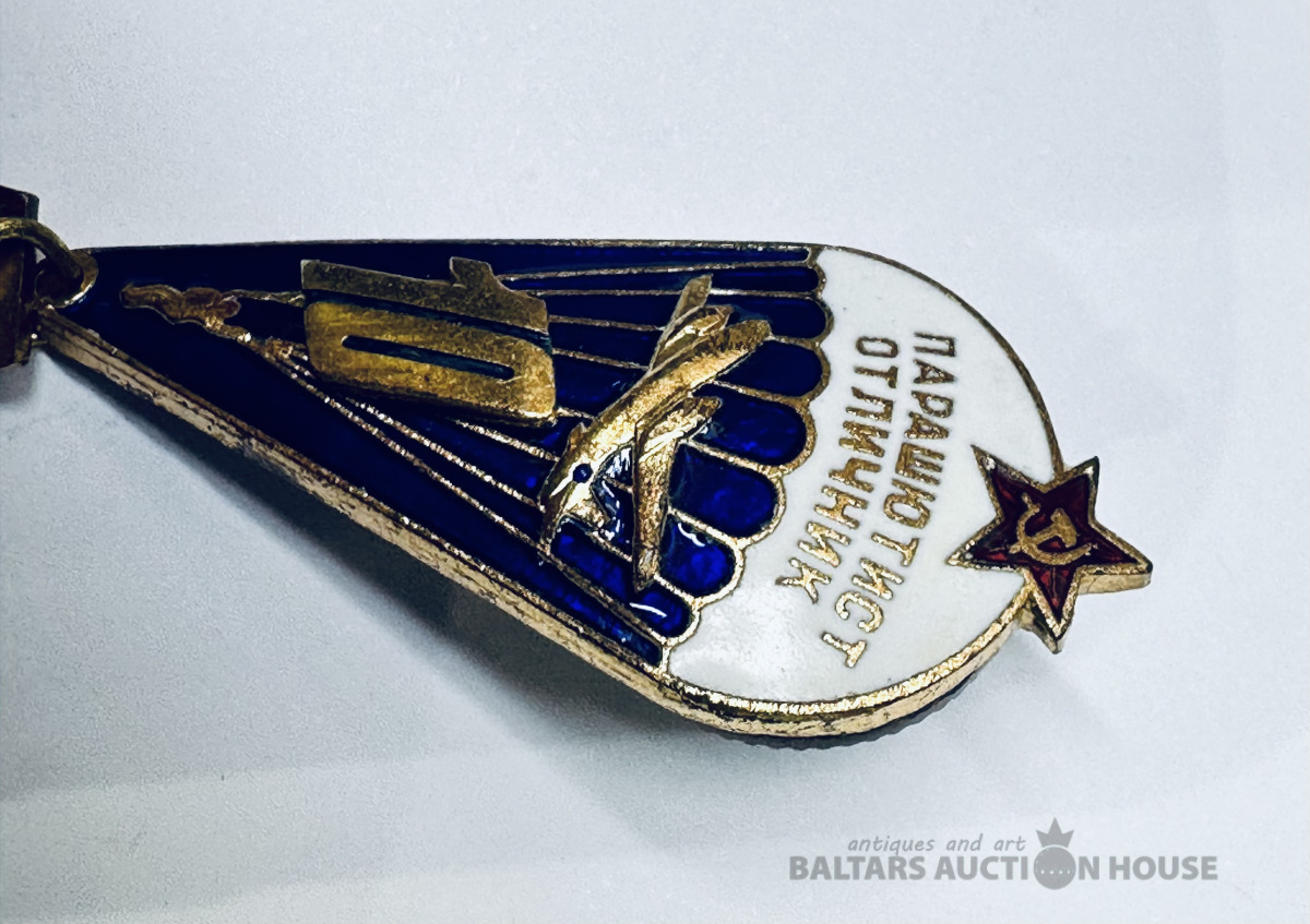 Nozīme Izpletņlēcējs teicamnieks, trīs krāsu karstā emalja, PSRS, bez defektiem.