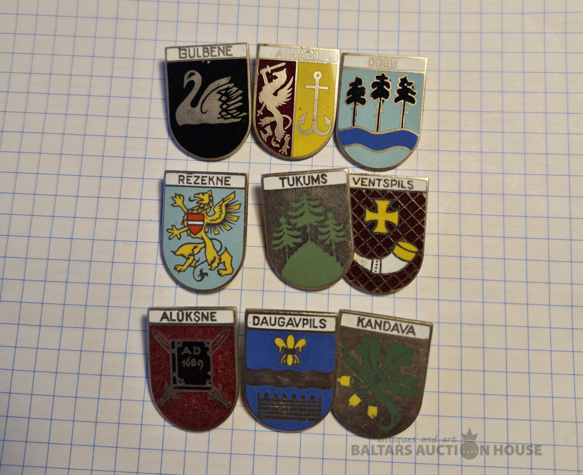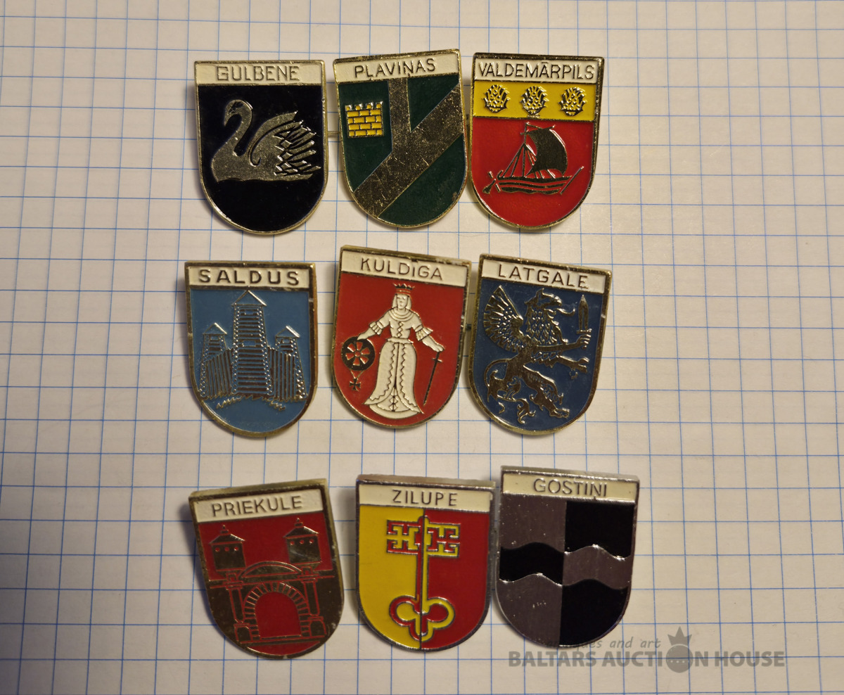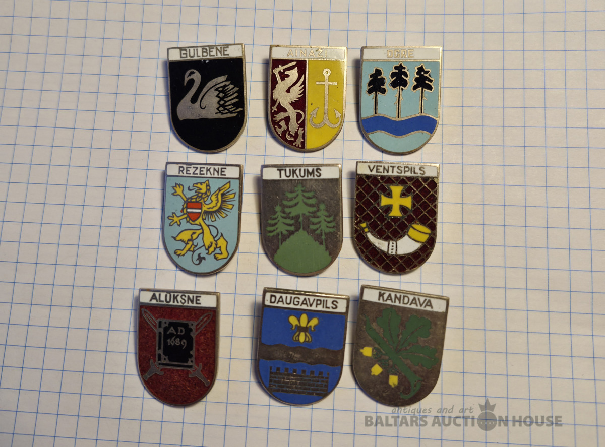 Ģērboņi . Aukstā emalja , vieglais metāls