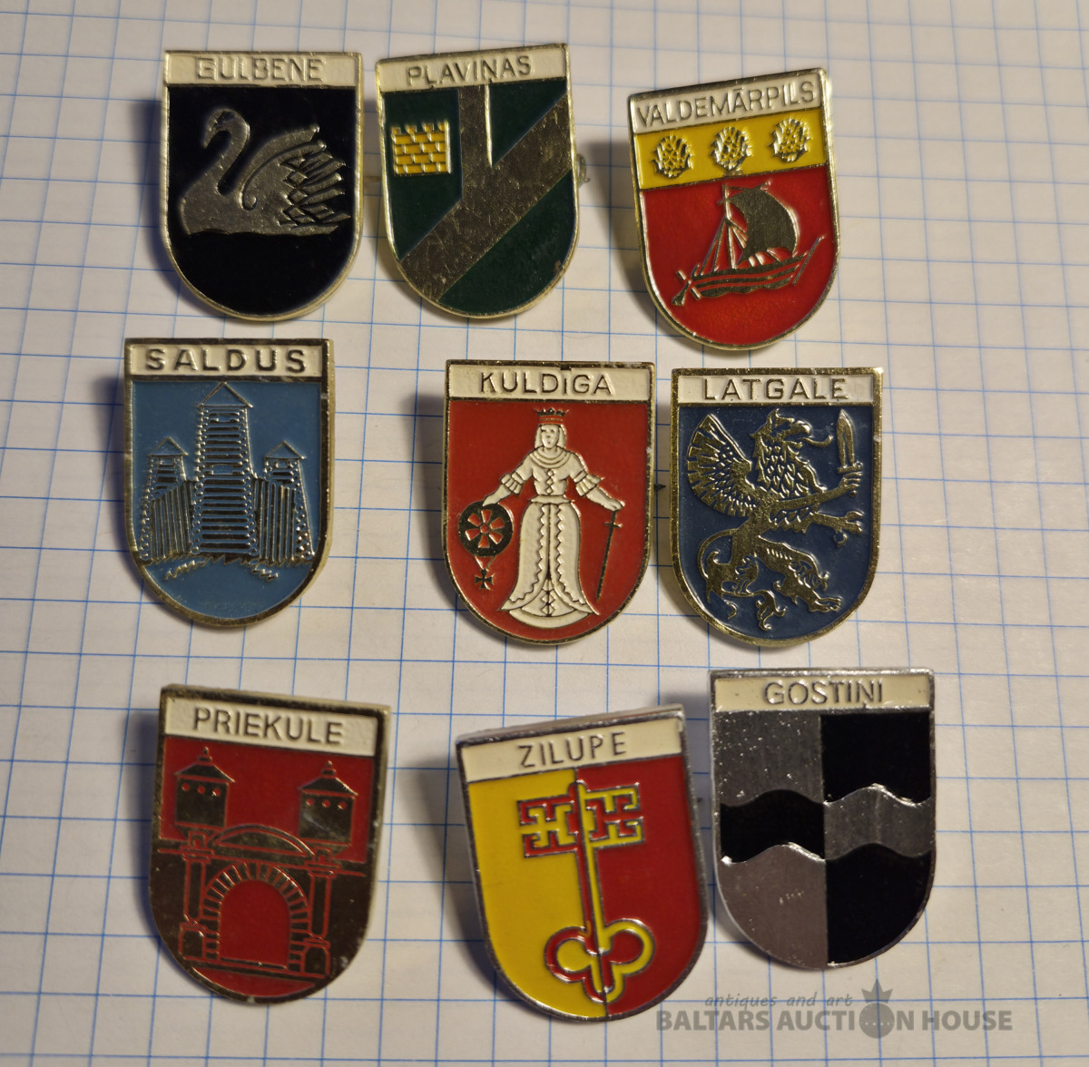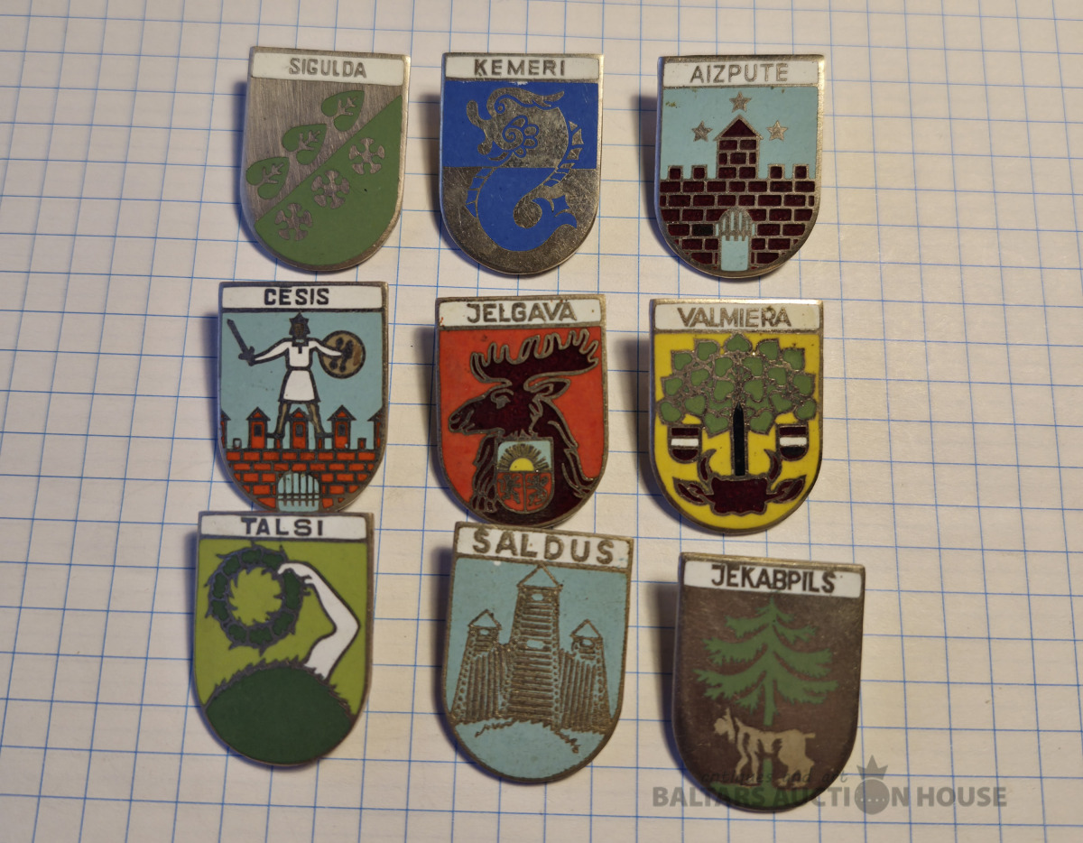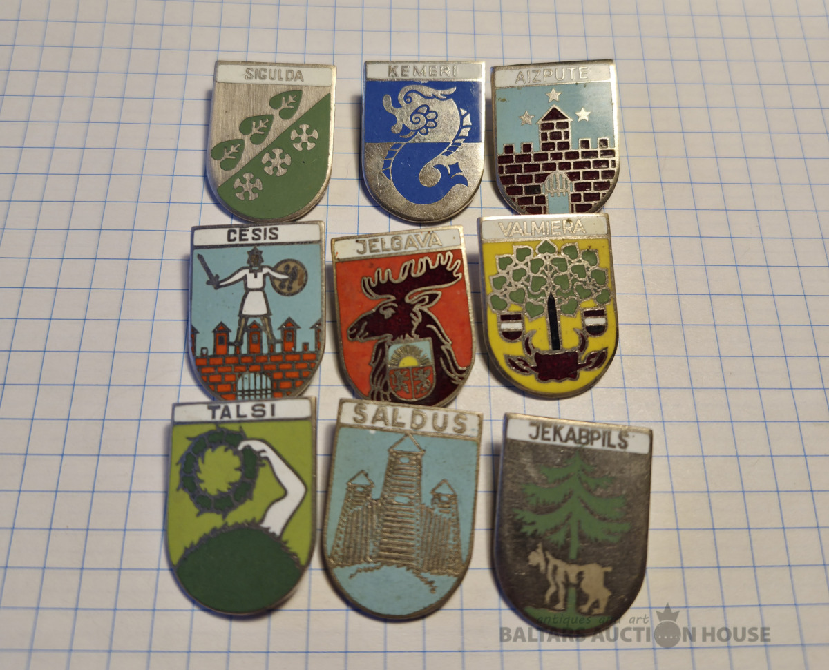 Ģērboņi . Aukstā emalja , vieglais metāls