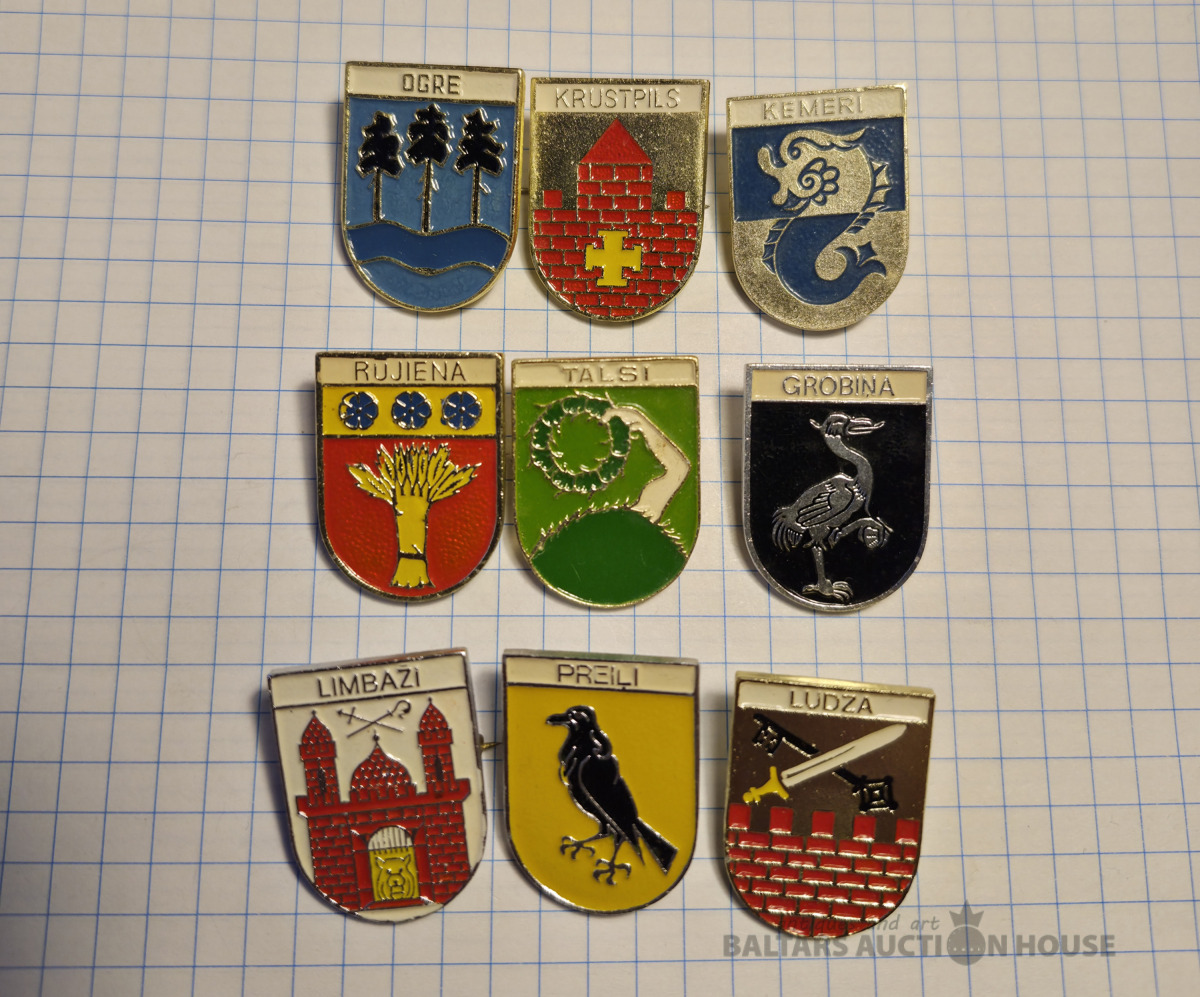 Ģērboņi . Aukstā emalja , vieglais metāls