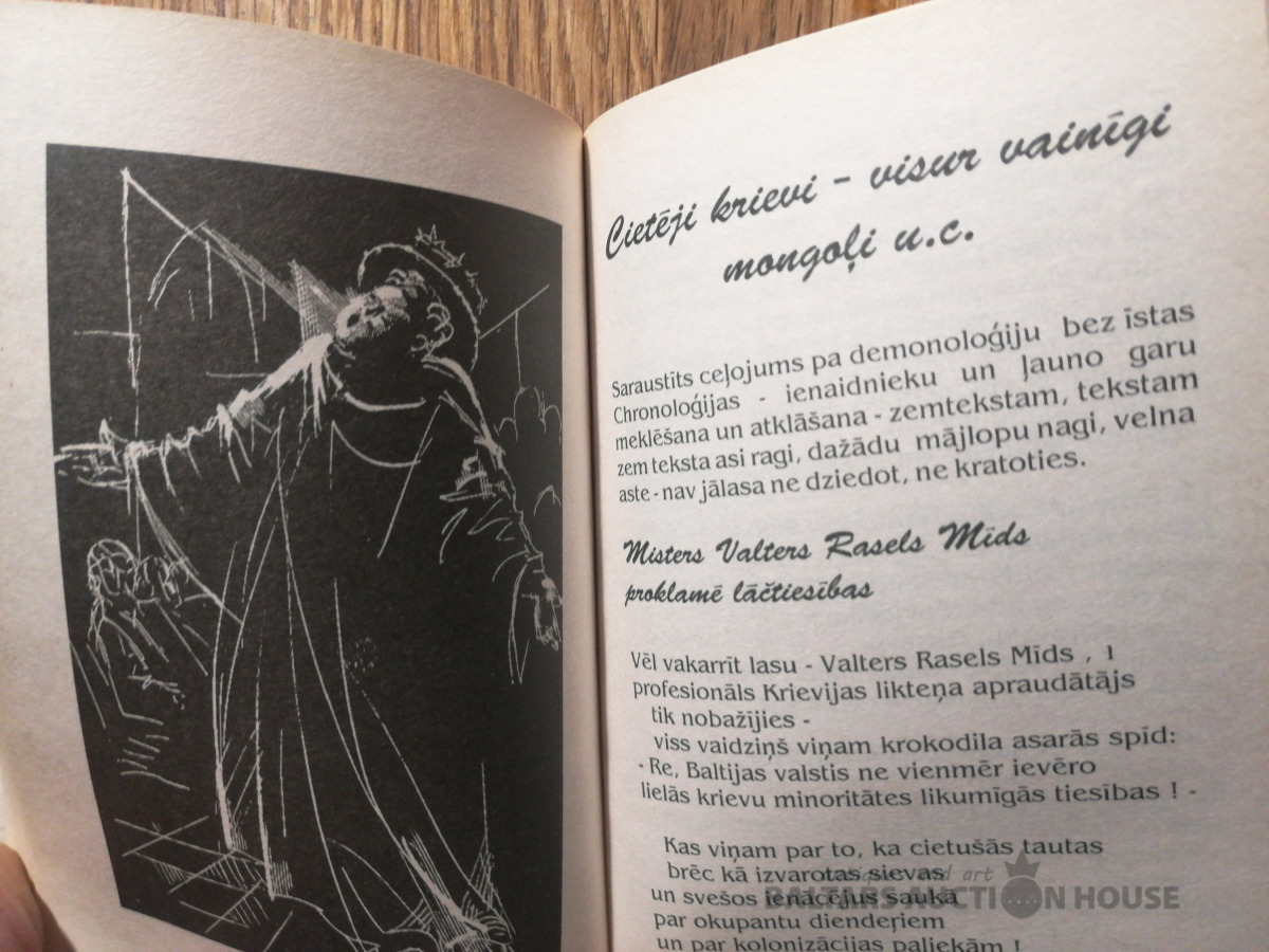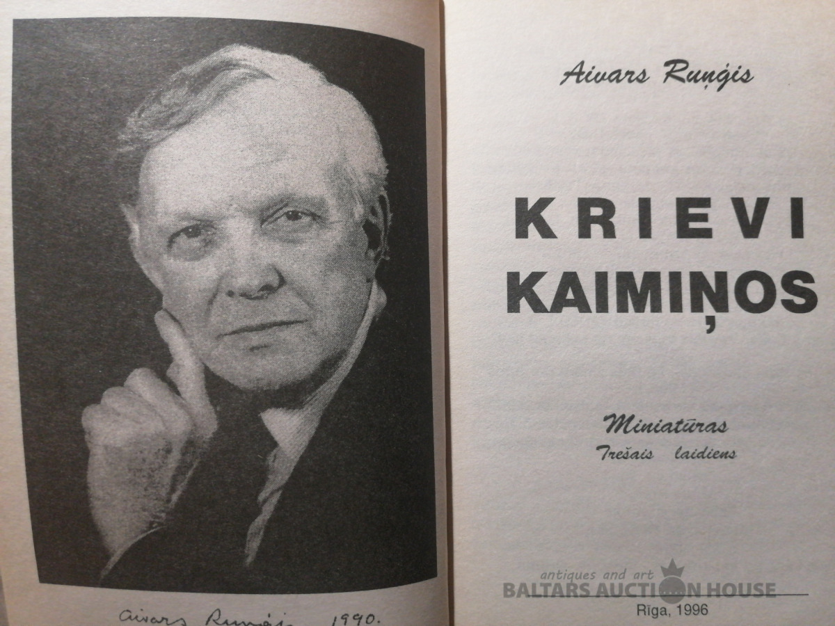 Aivars Ruņģis “Krievi kaimiņos “, 1996., Viestura Granta ilustrācijas. Trimdinieka ironiski nesaudzīgs skats par kaimiņtautu un tās nodarīto Latvijā