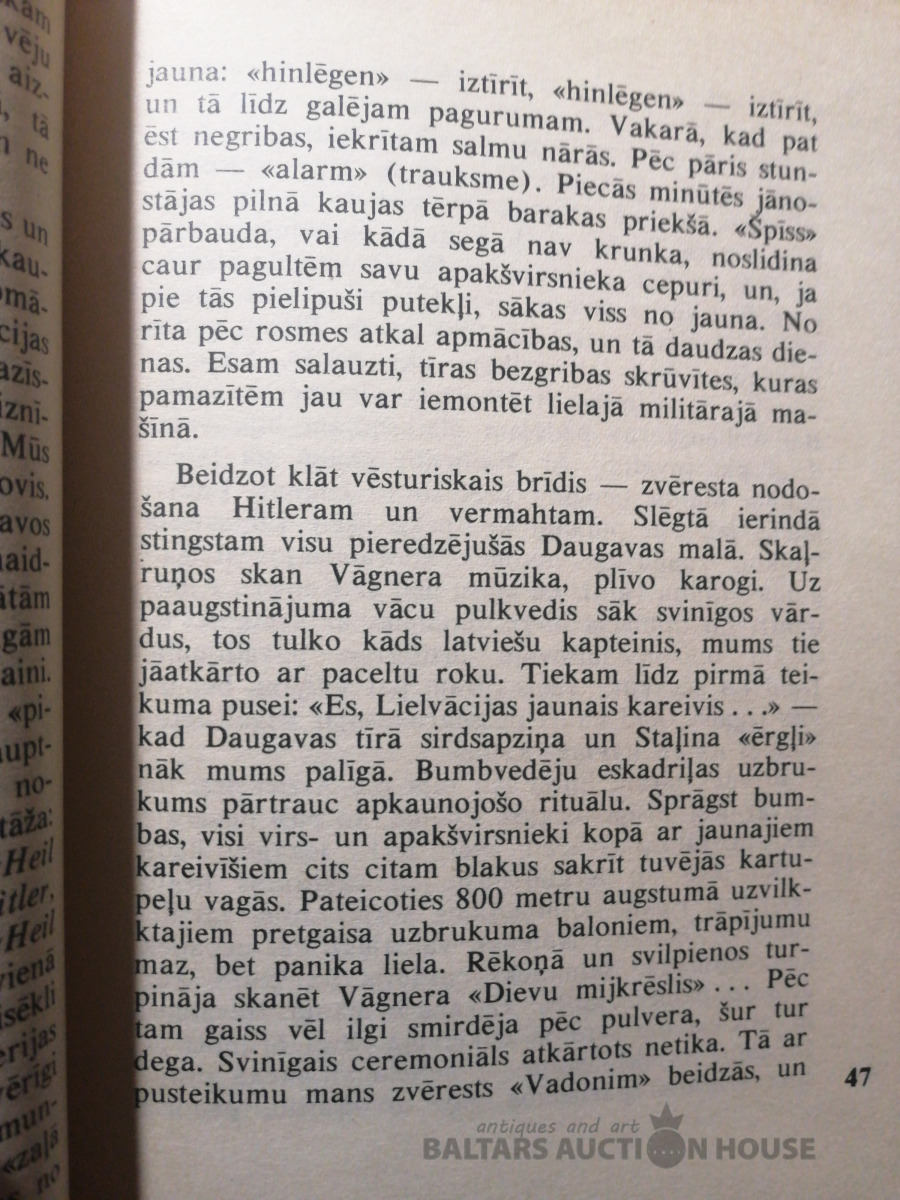 Harijs Liepiņš “Manas dzīves skatuve”, Mākslas bibliotēka, 1991., ievērojamais aktieris atceras savas dzīves notikumus, arī dienestu vācu armijā un nometnes Sibīrijā