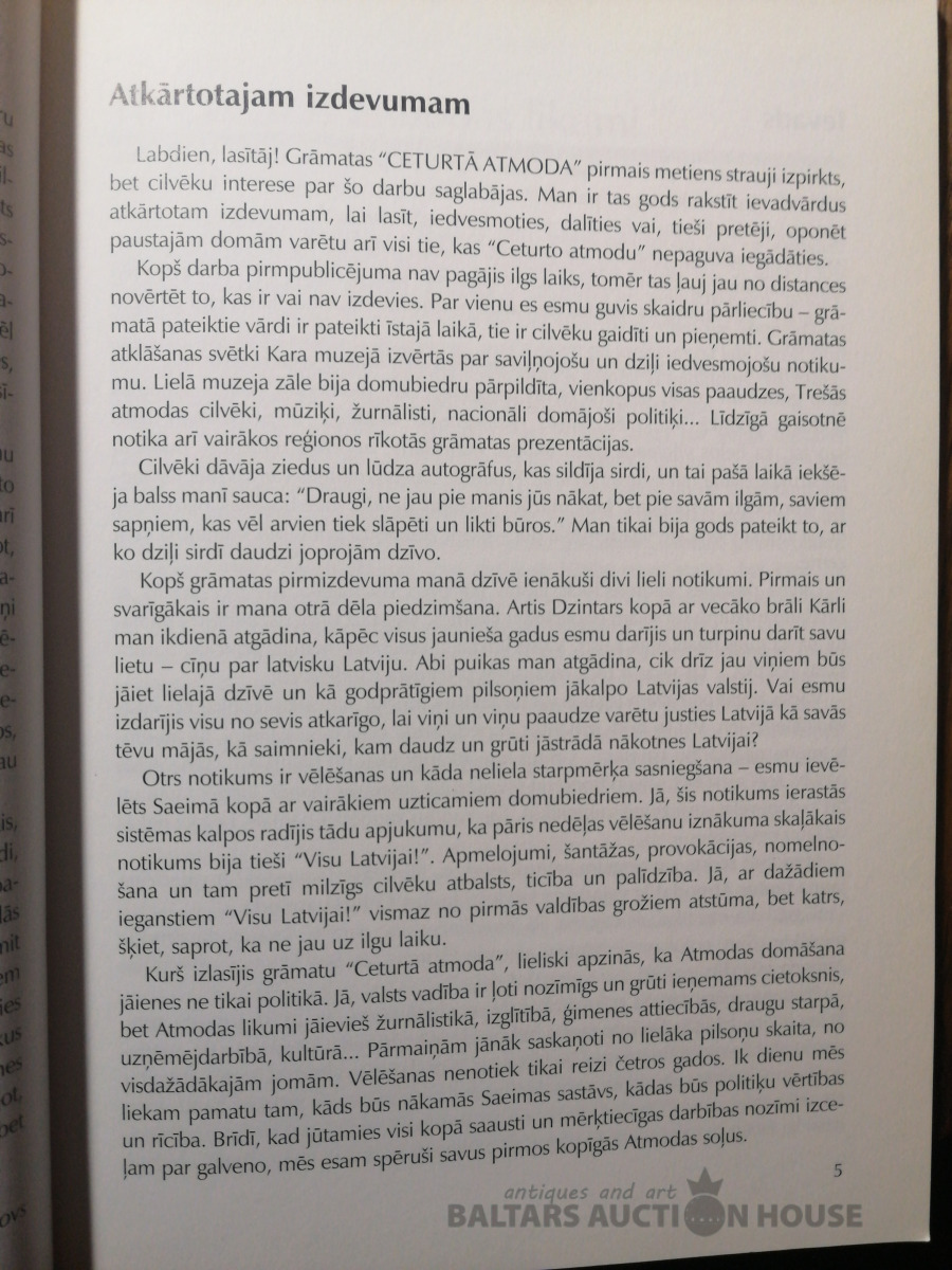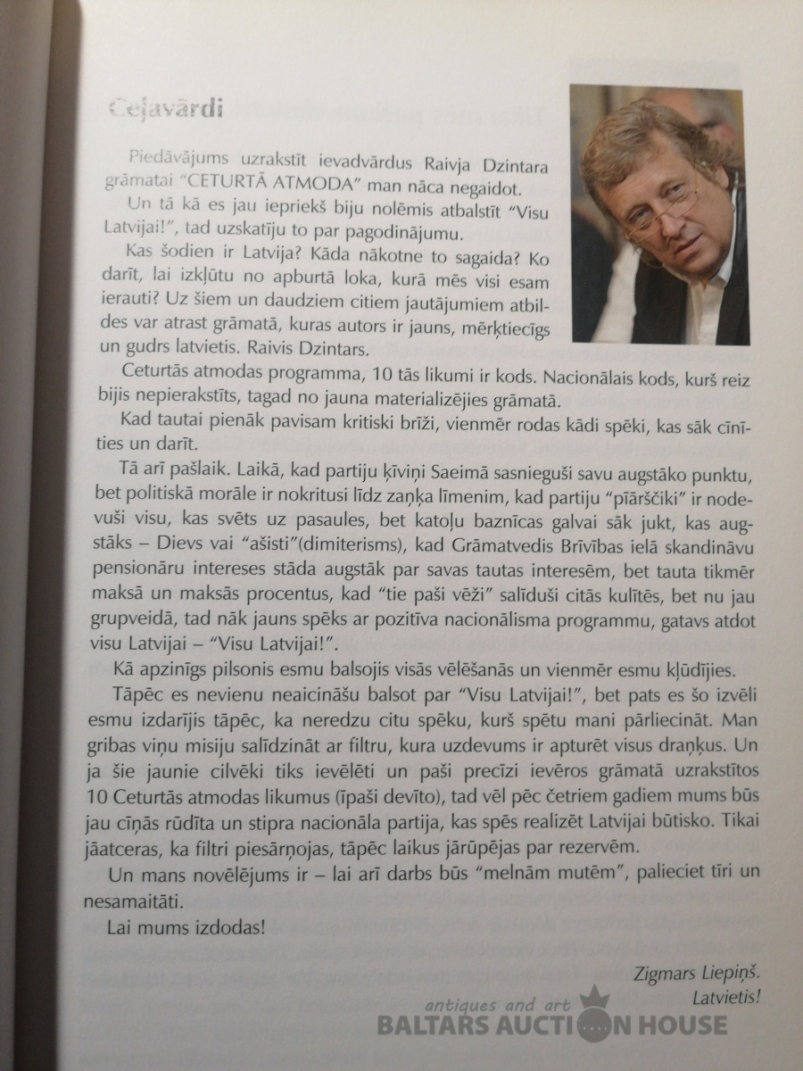 Raivis Dzintars “Ceturtā atmoda”, autora izdevums, 110 lpp., jauna, ar Zigmāra Liepiņa ceļavārdiem. Paliekošs jaunāko laiku vēstures dokuments