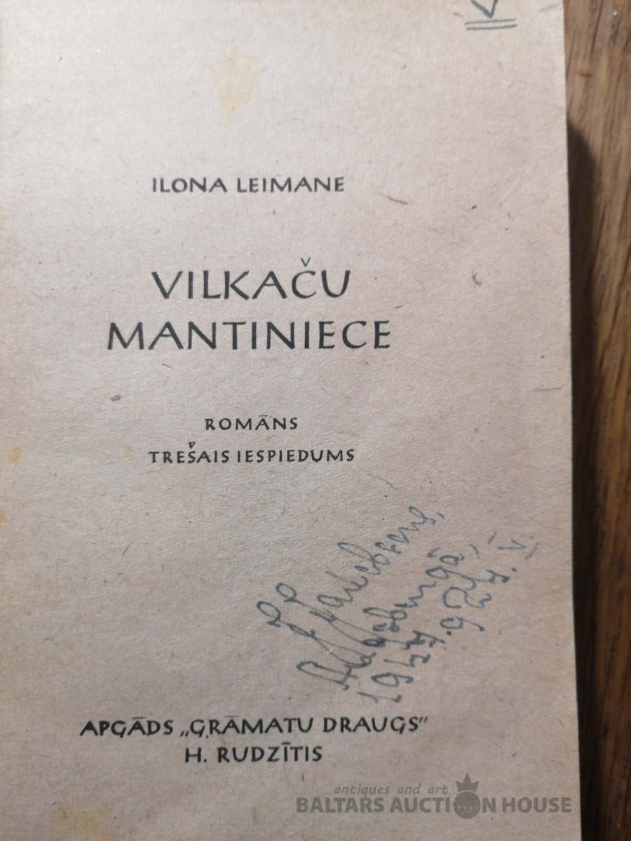 Ilona Leimane “Vilkaču mantiniece”, Grāmatu draugs, Vācijā, 1947. Nav priekšvāka, pārējais labā stāvoklī. Viens no pirmajiem latviešu izdevumiem trimdā, nu jau vēstures artefakts