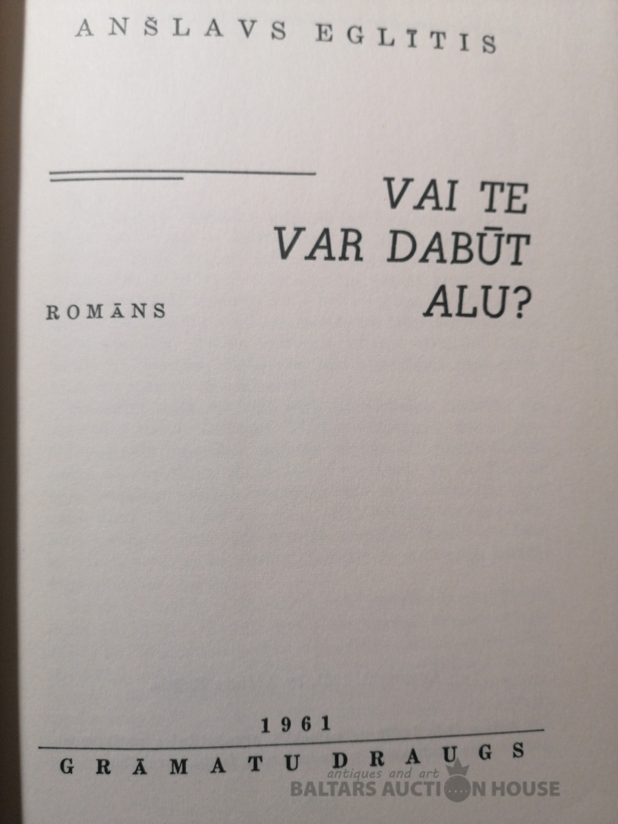Anšlavs Eglītis “Vai te var dabūt alu”, Grāmatu draugs, 1961., 320 lpp., ideālā stāvoklī. Sižeta pamatā reāli notikumi par Anglijā sagatavotas latviešu izlūku grupas gaitām okupētajā Latvijā.