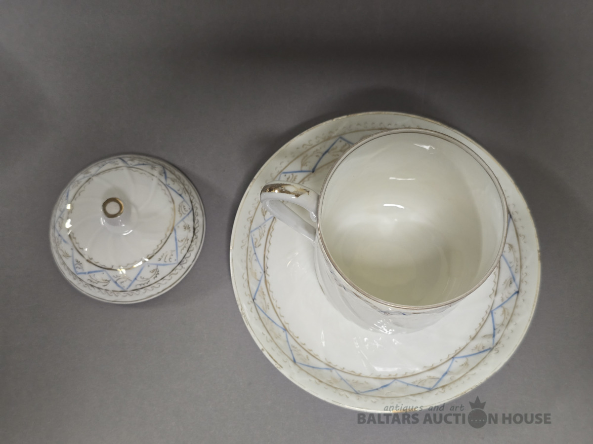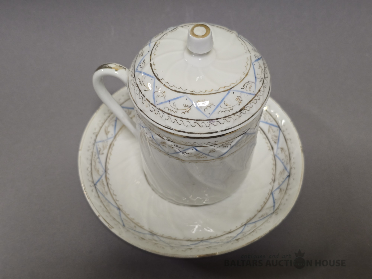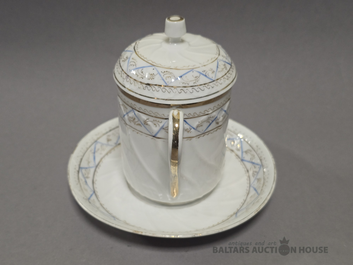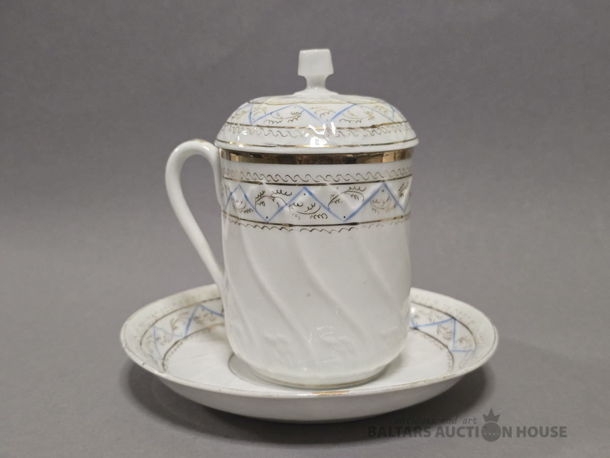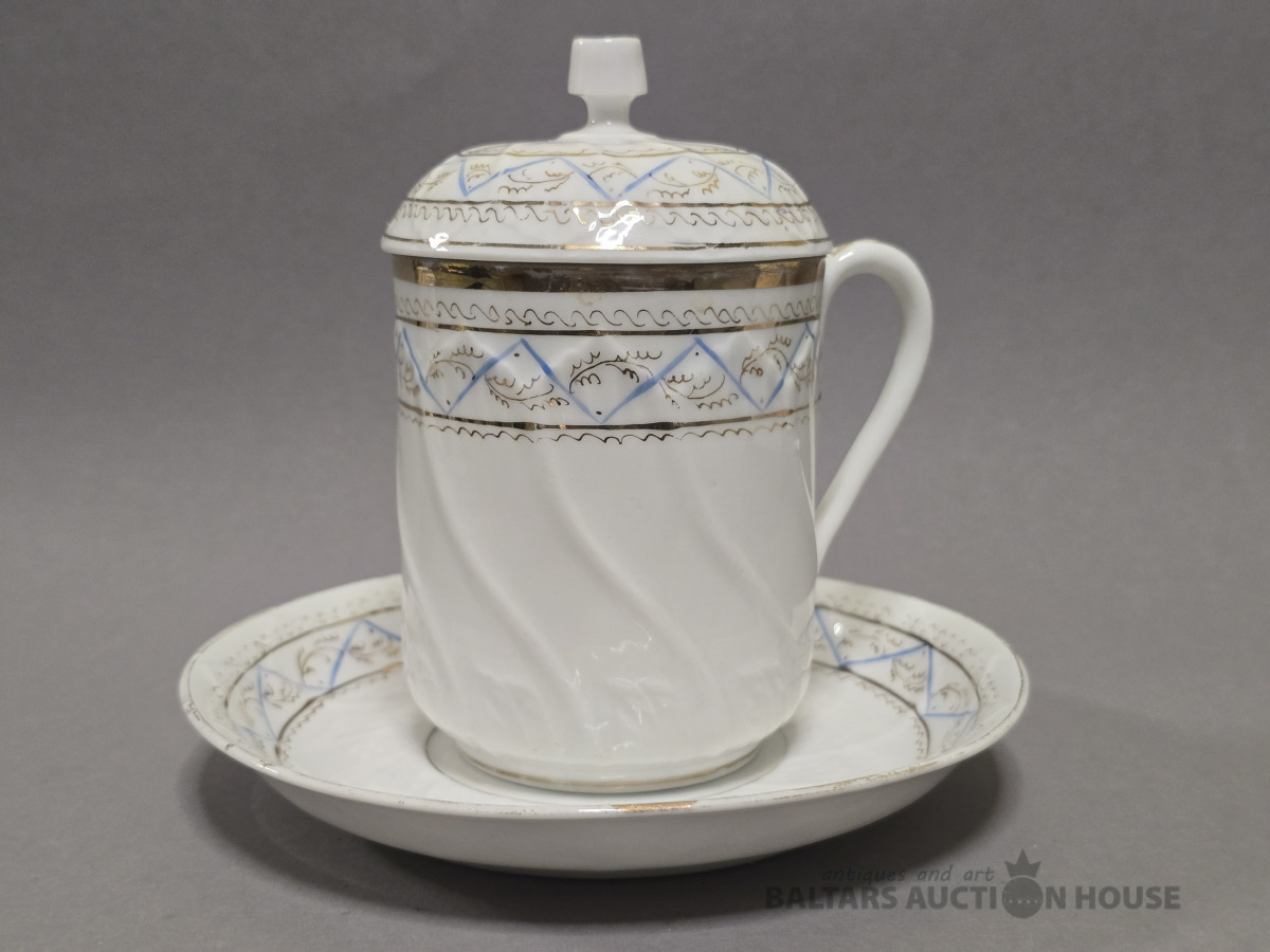 Tējas komplekts , Lielizmēra tējas pāris ar vāciņu , porcelāns, M.S. Kuzņecova rūpnīca. roku gleznojums, Krievijas impērija, 19. un 20. gadsimtu robeža.