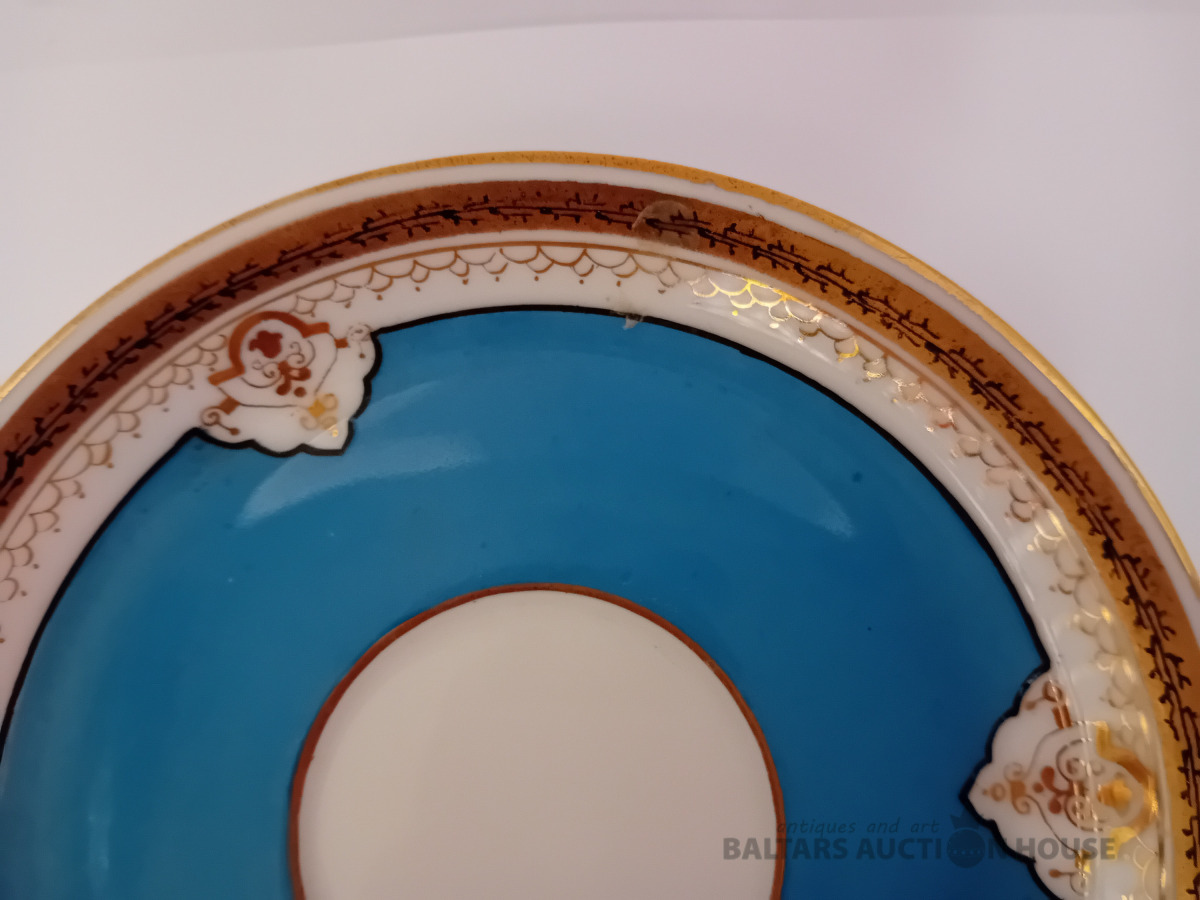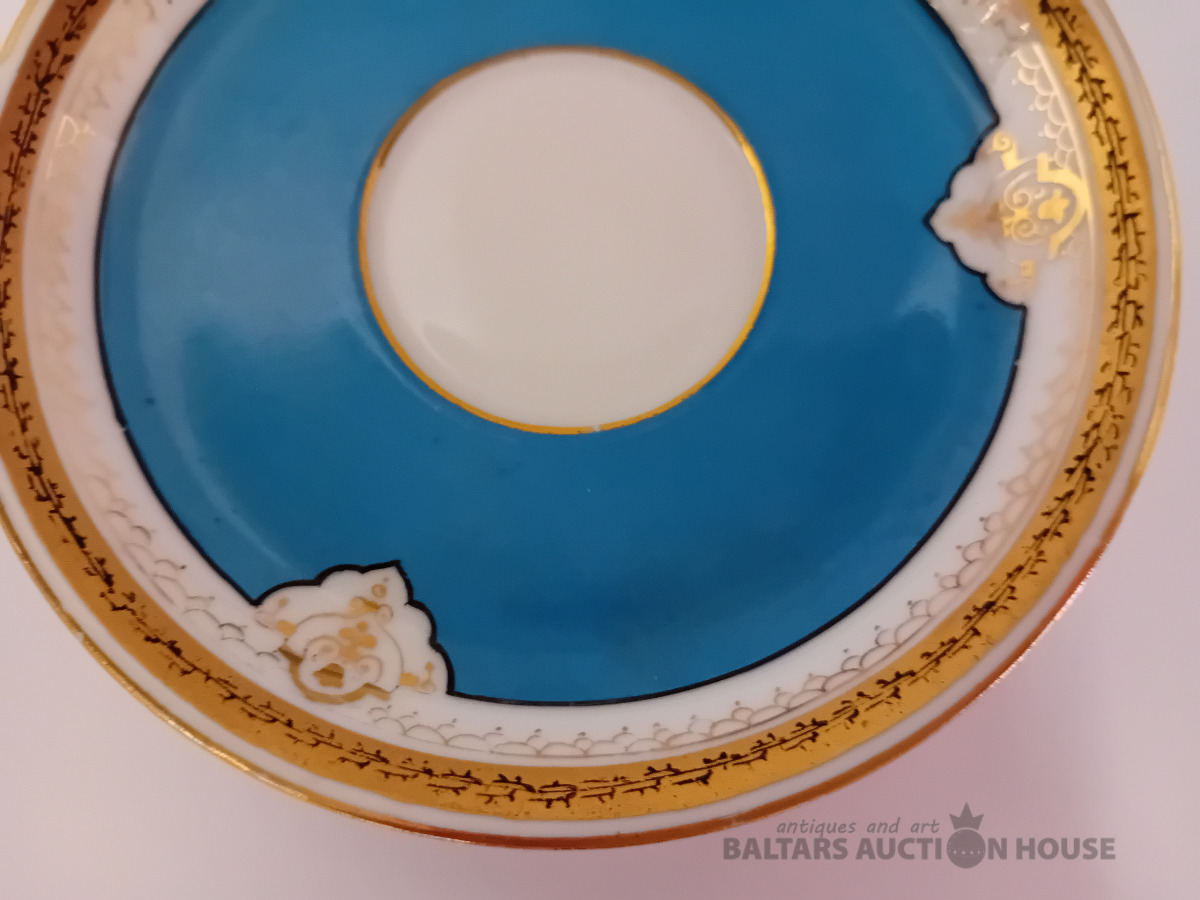Cara laika, mokas izmēra kafijas pāris ,bez zīmoga, Krievijas Impērija, tase 6,5 cm h, 6,7 cm d., Lietošanas pazīmes, apakštasei apakšā zelta klājuma paliekas.