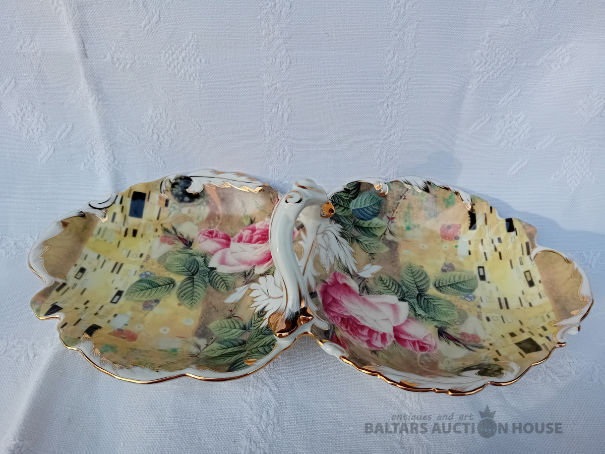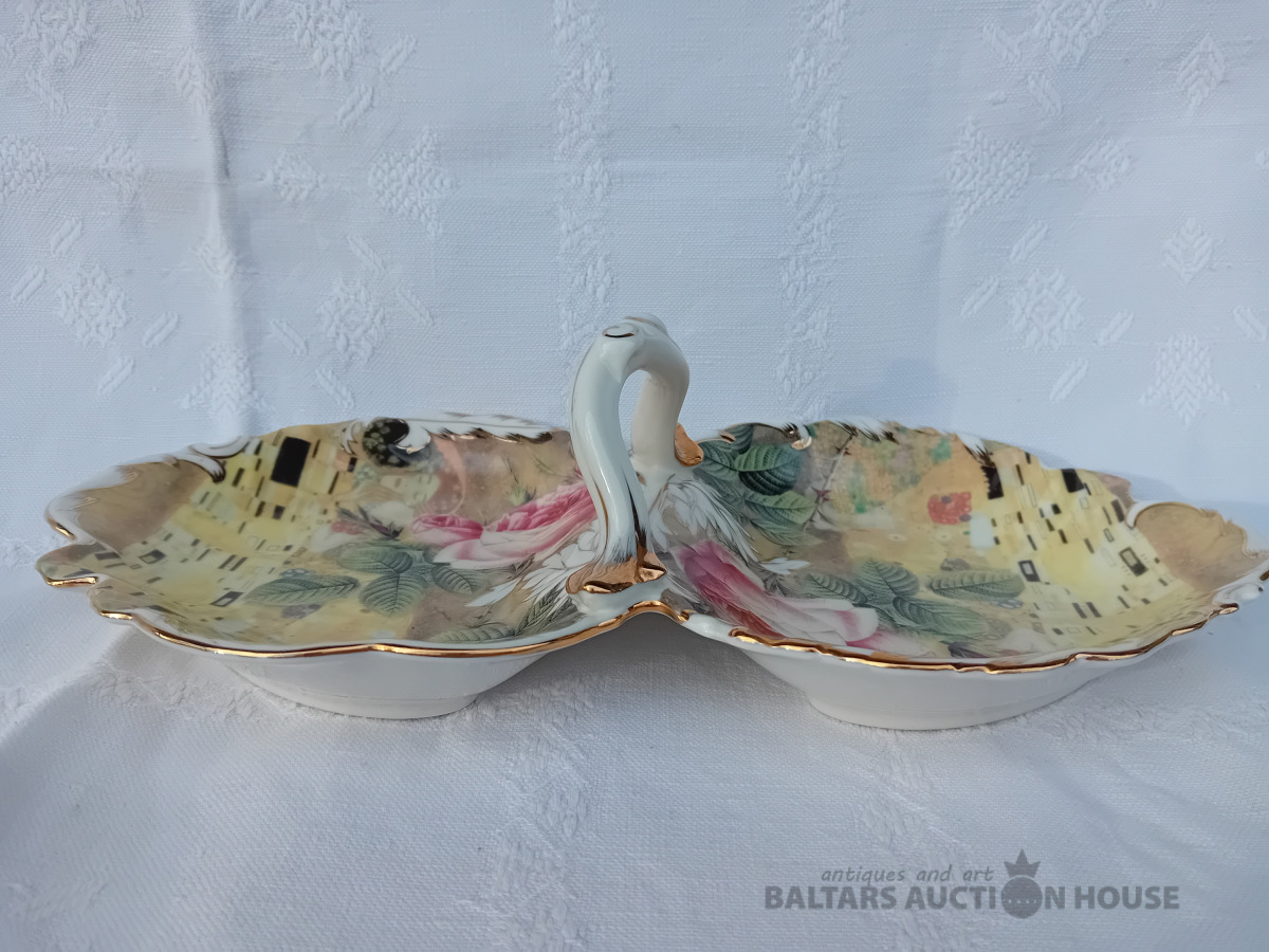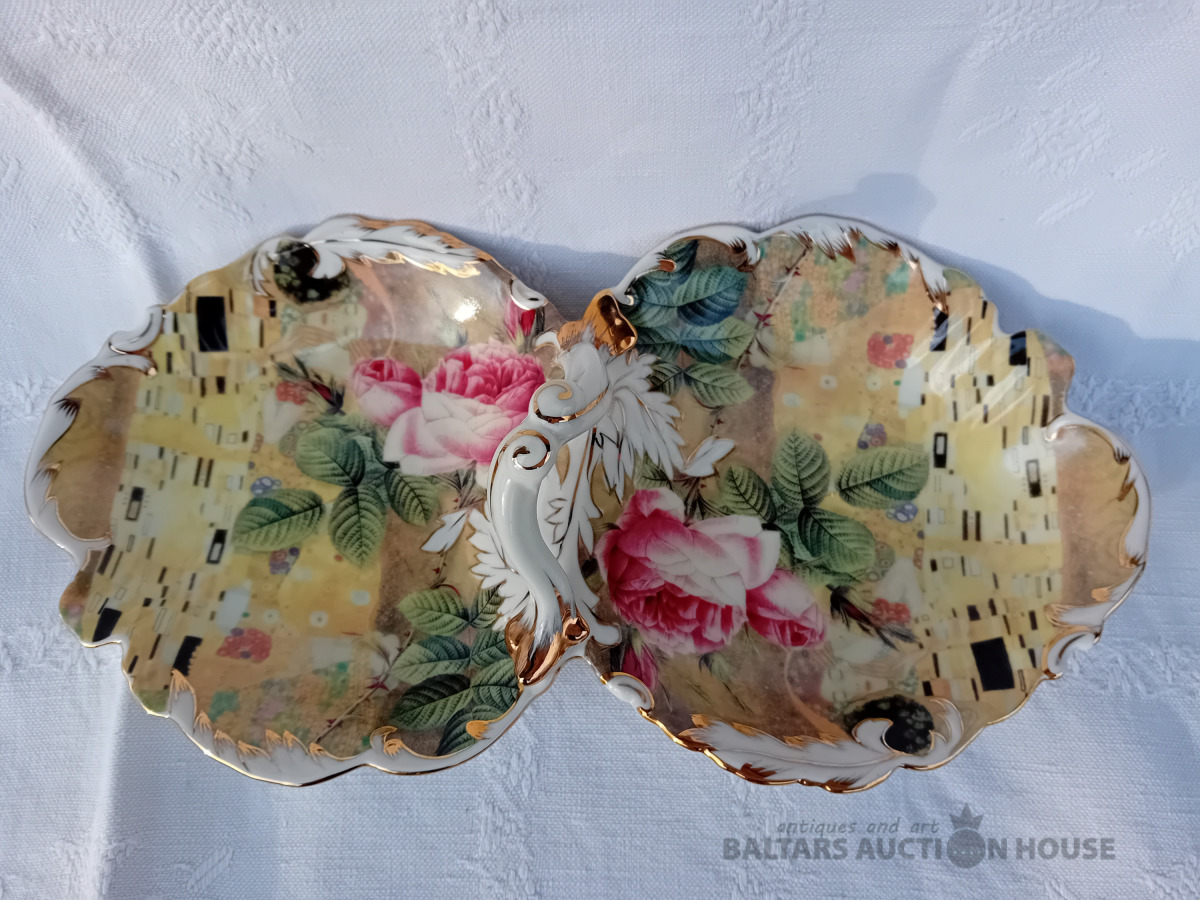 Porcelāna augļu trauks, 32 cm, dekols, zeltījums