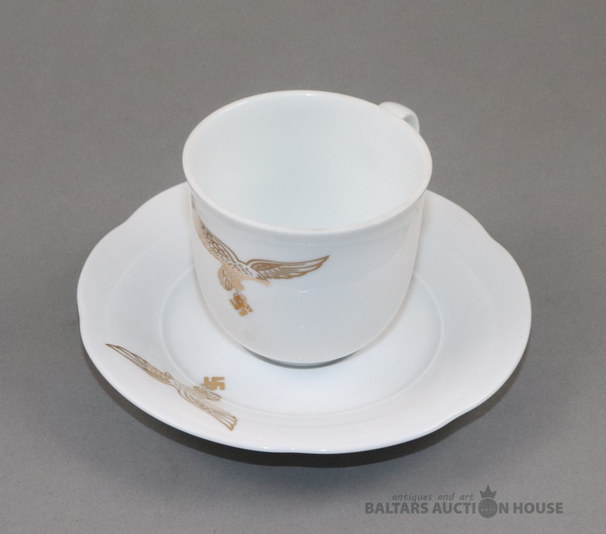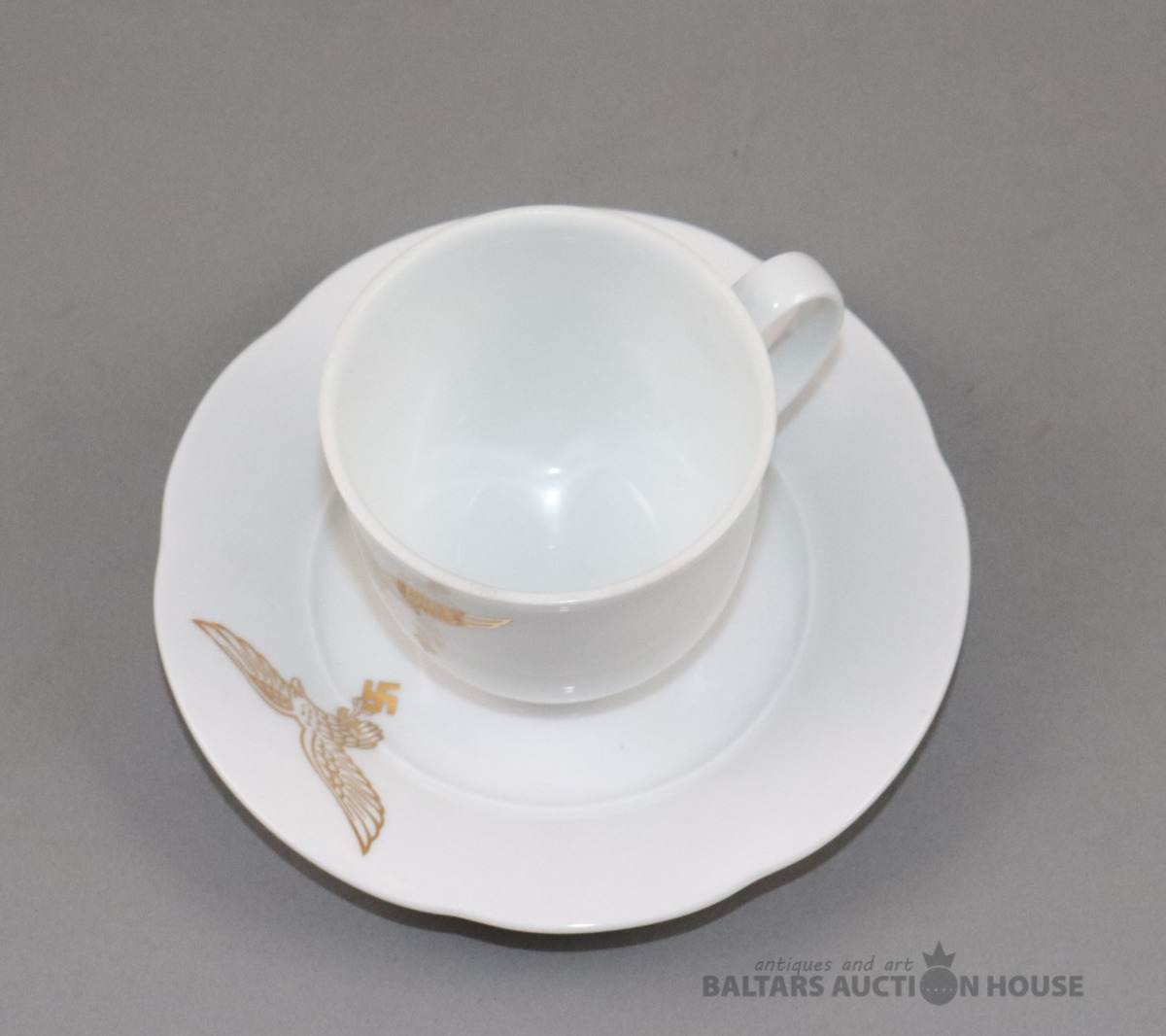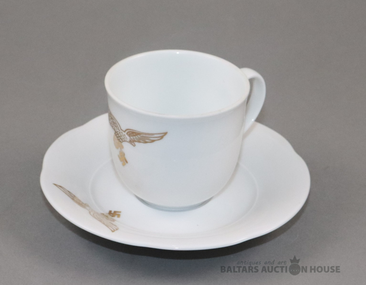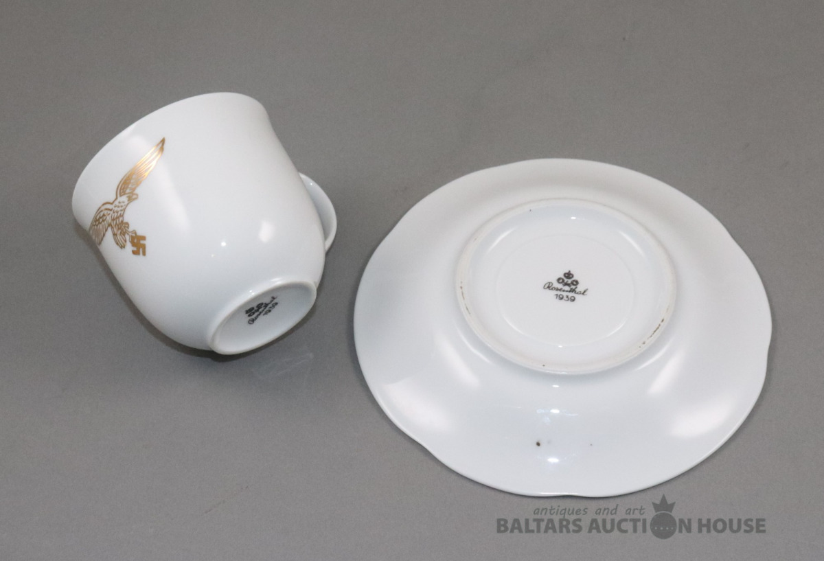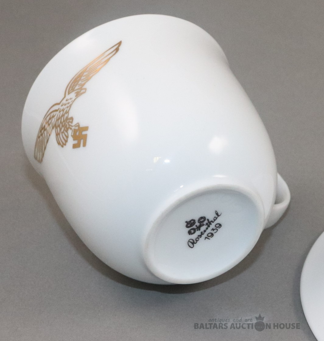 Tase ar apakštasi. Porcelāns, Rosenthal, 1939. h=7,2 cm. d=7,3 un 14,3 cm