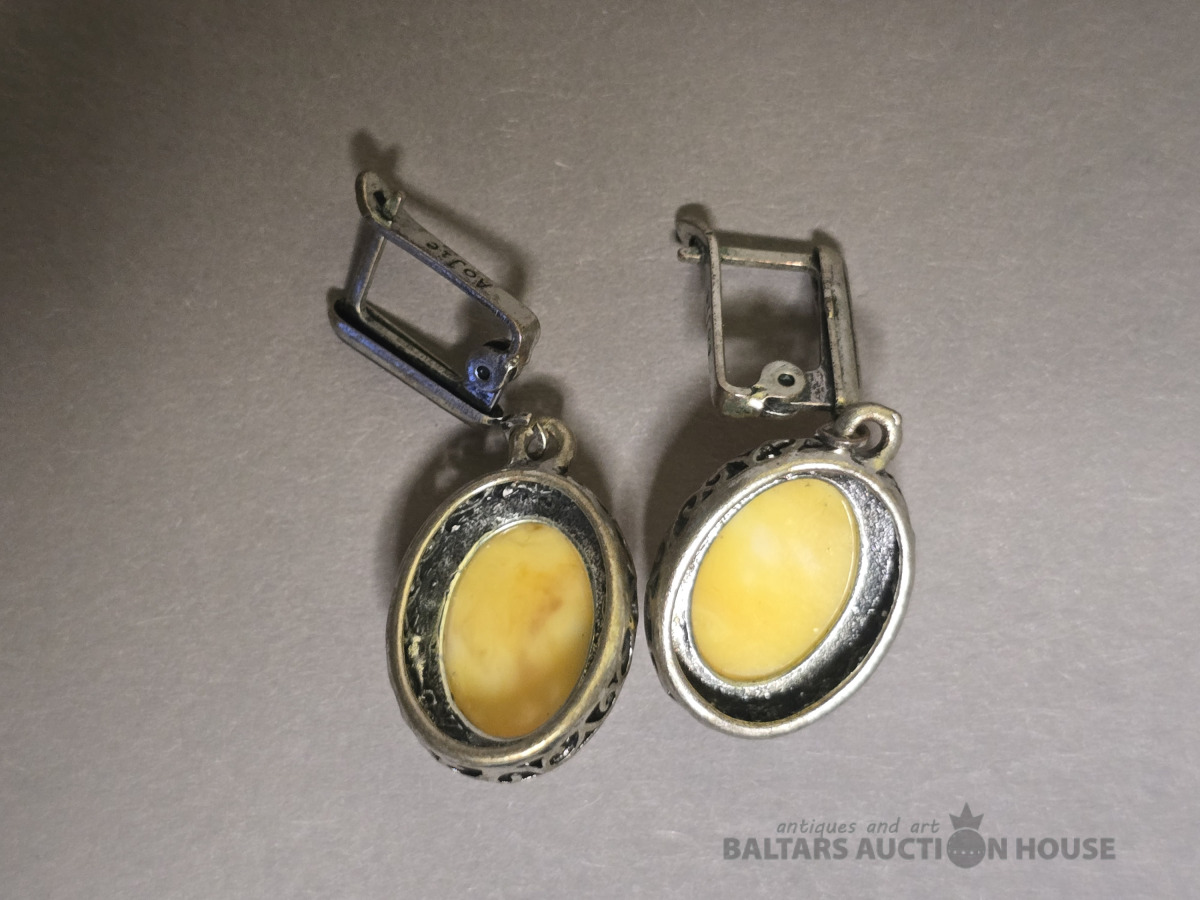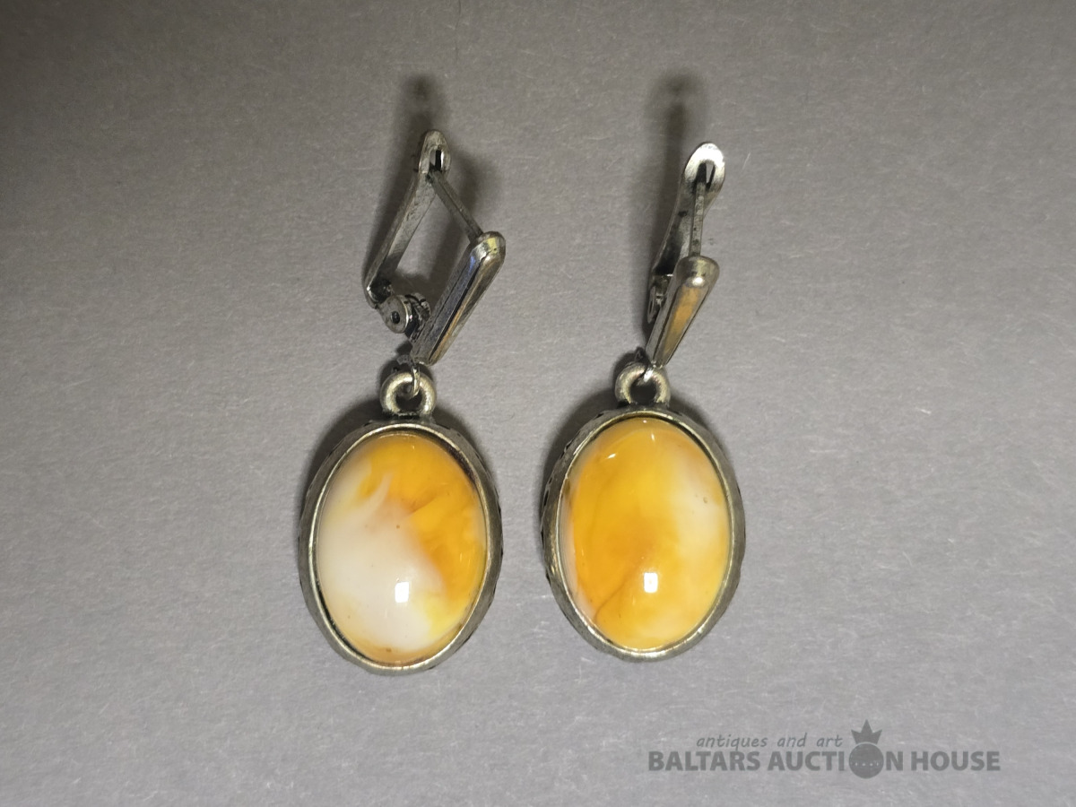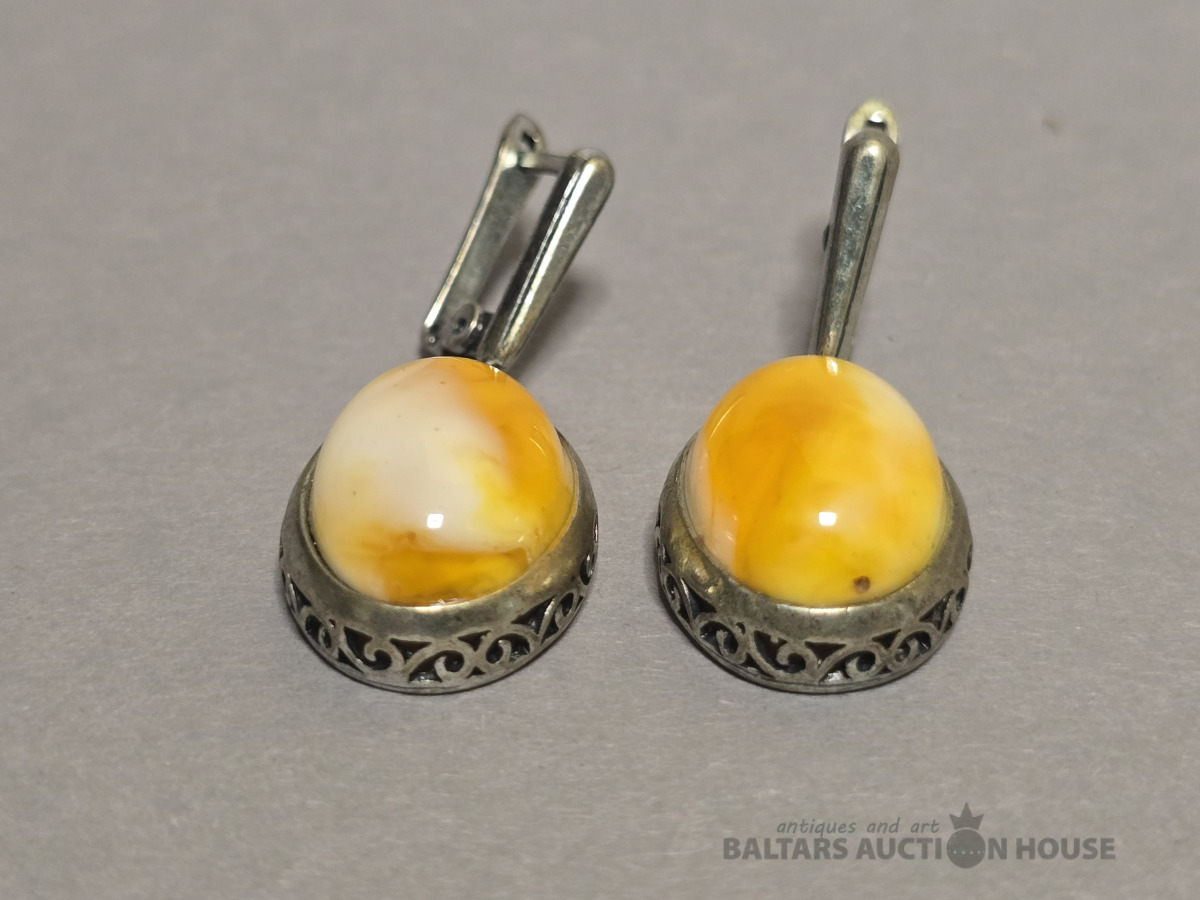 Auskari , Dzintara auskari,sudraba.Roku darbs.Svars 7.95 gr.