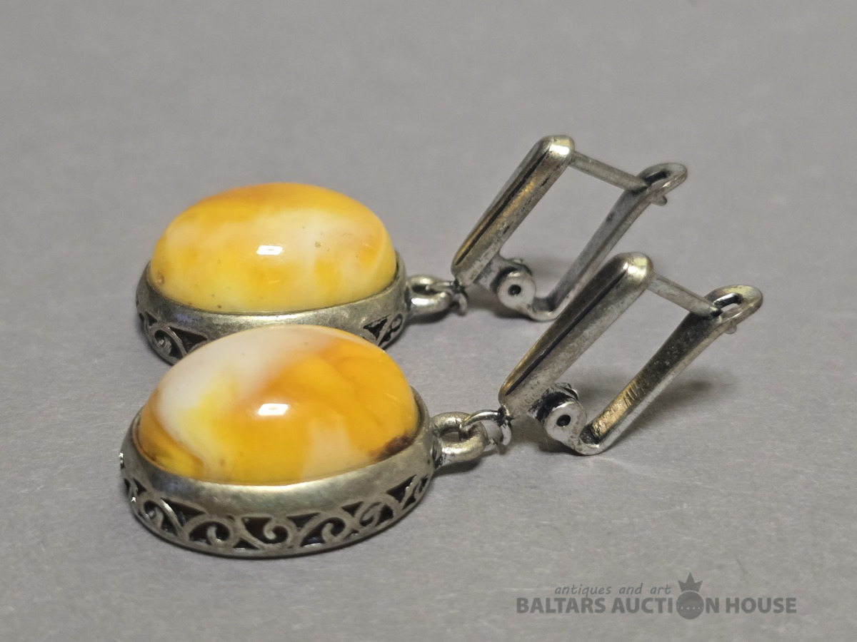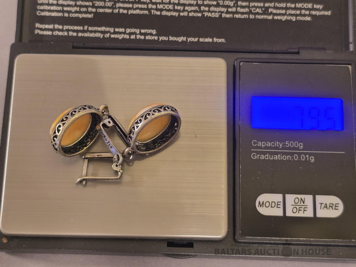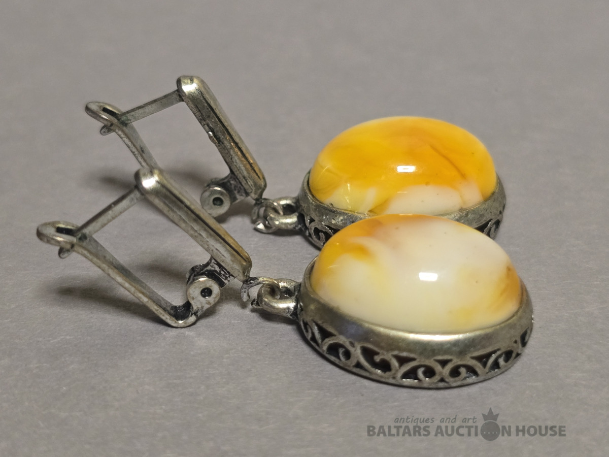 Auskari , Dzintara auskari,sudraba.Roku darbs.Svars 7.95 gr.
