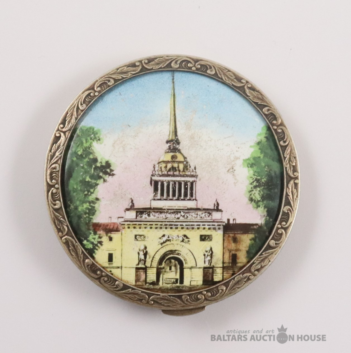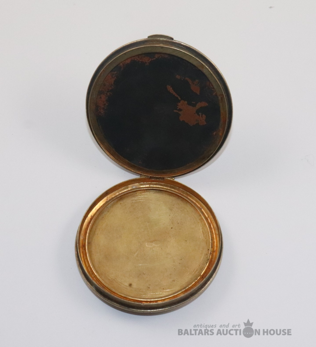 Pūdernīca. Sudrabs 916., zeltījums. Svars 44,41 g. d=7 cm