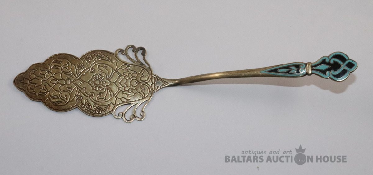 Tortes lāpstiņa. Sudrabs 875, emalja. Svars 61,52 g. l=24,3