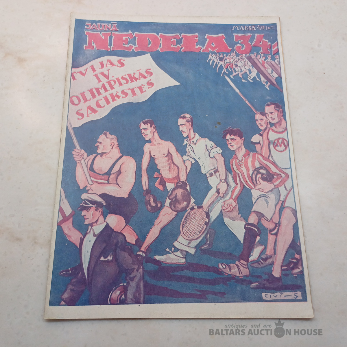 jaunā NEDĒĻA 1927/34. Vāku zīm Sergejs Civinskis (Civis). Par Latvijas sporta svētkiem