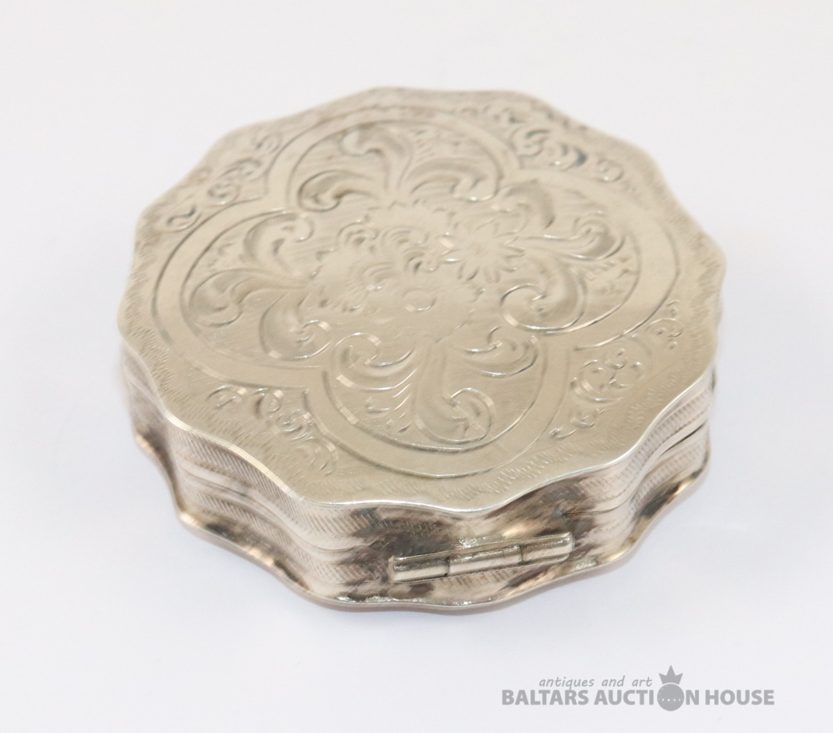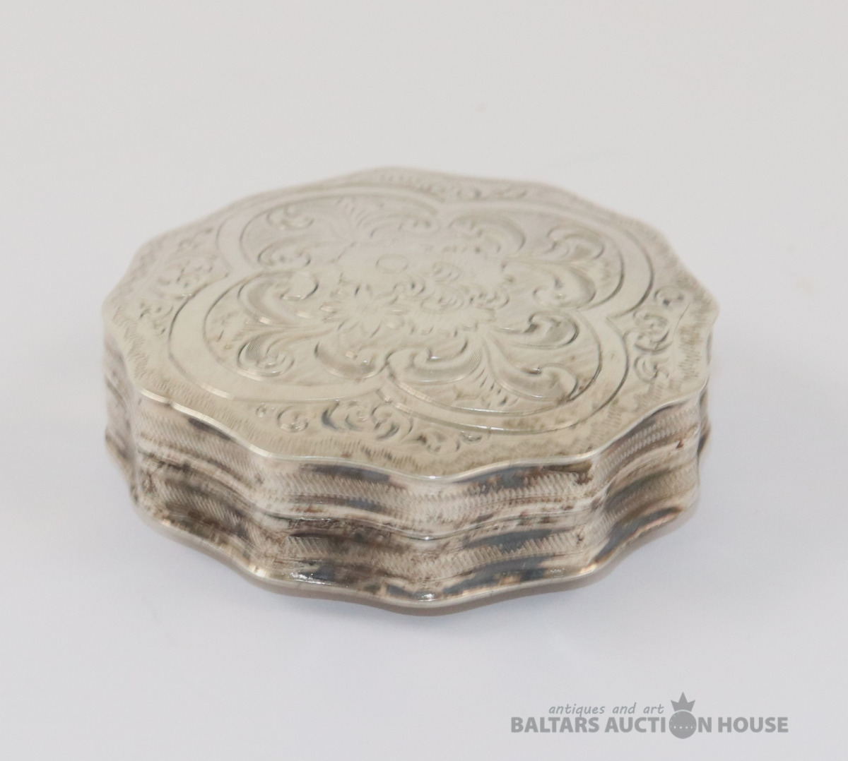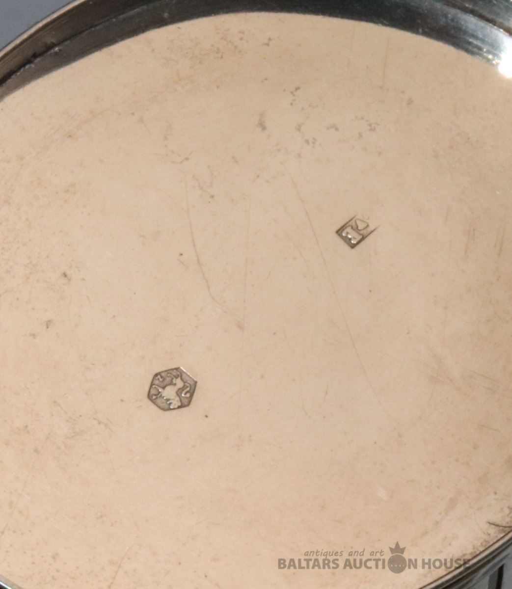 Kārbiņa. Sudrabs B.M. 90. Svars 23,73 g. h=1,3 cm. d=5,3 cm