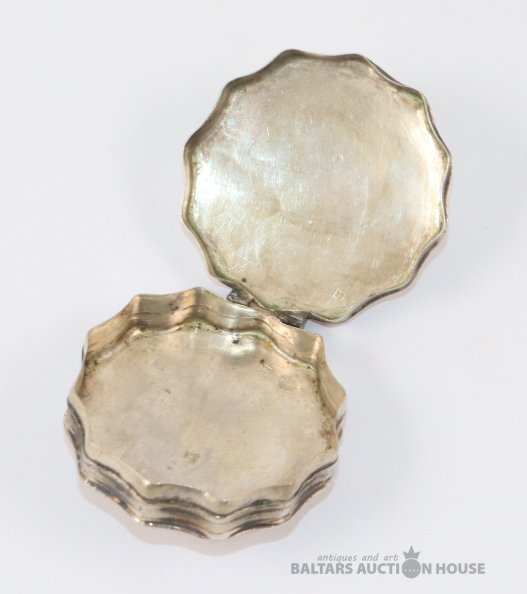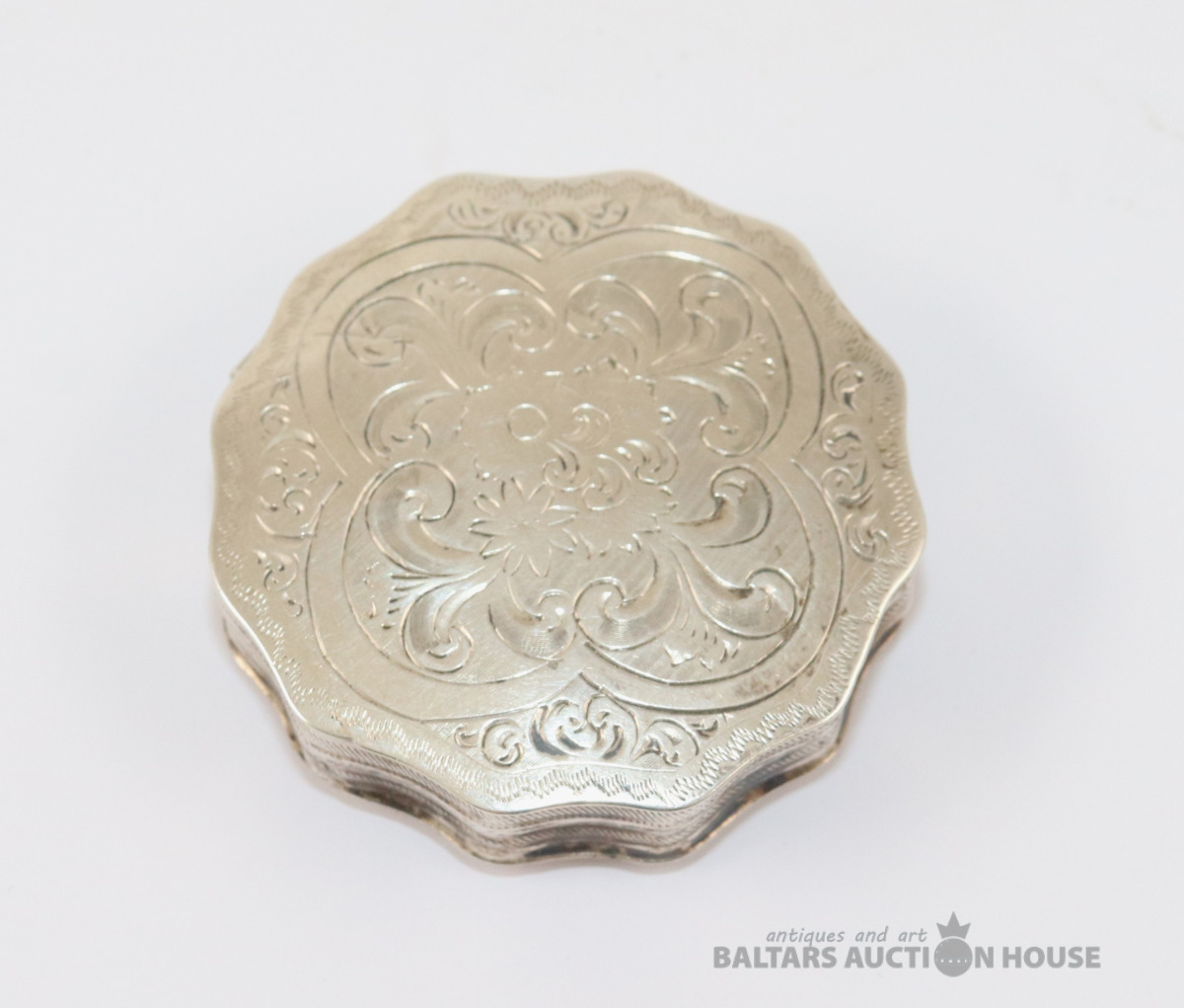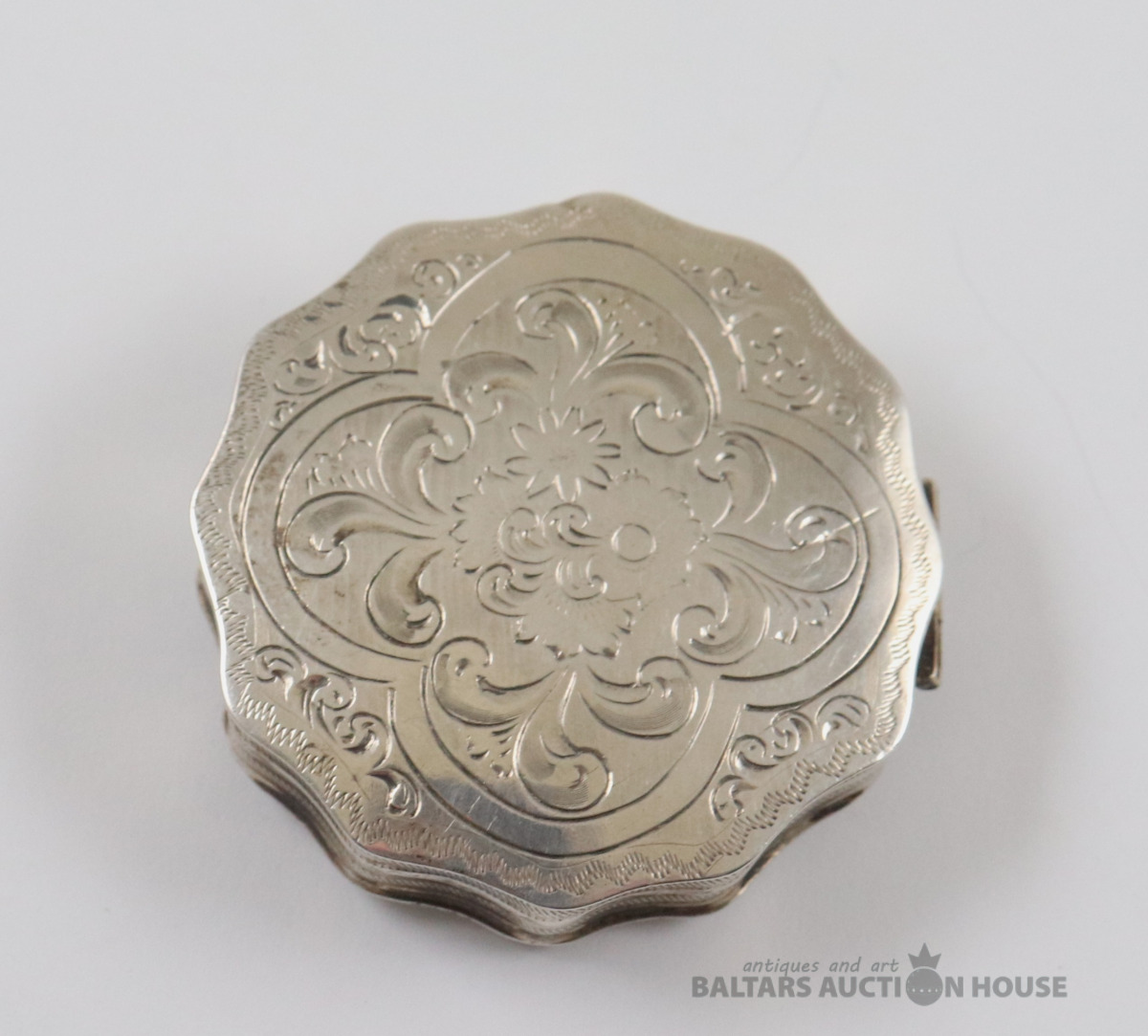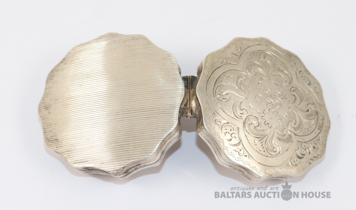 Kārbiņa. Sudrabs B.M. 90. Svars 23,73 g. h=1,3 cm. d=5,3 cm