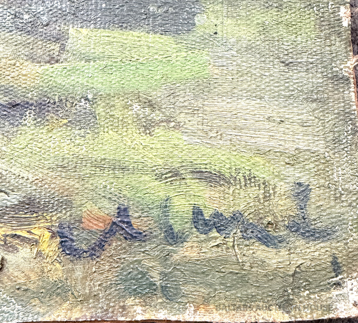 Autora paraksts. Kartons/Eļļa. 35x45 cm.