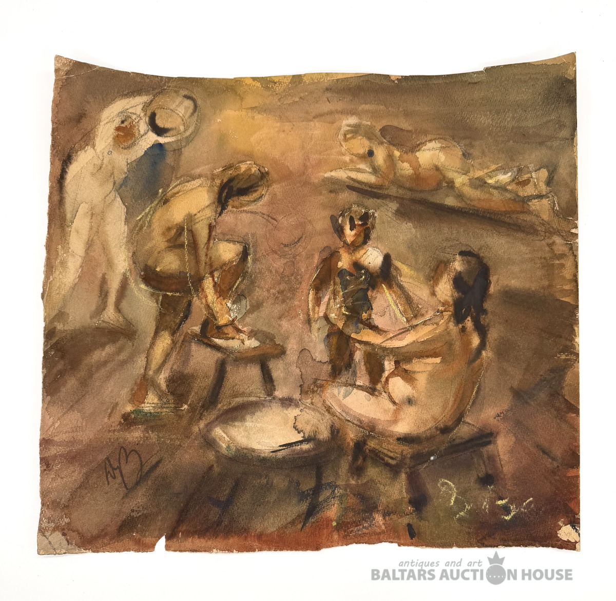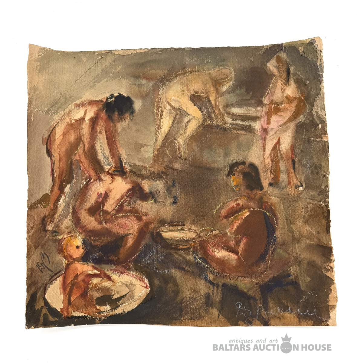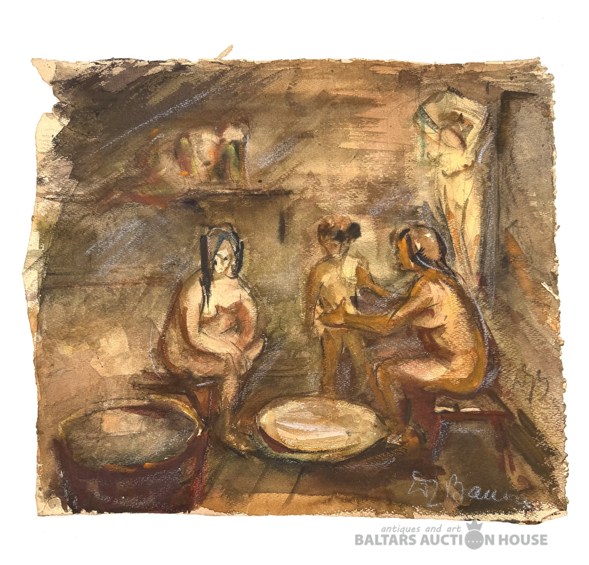 Dzidra Bauma “Pirtī” 39x36 cm. Papīrs\Akvarelis.