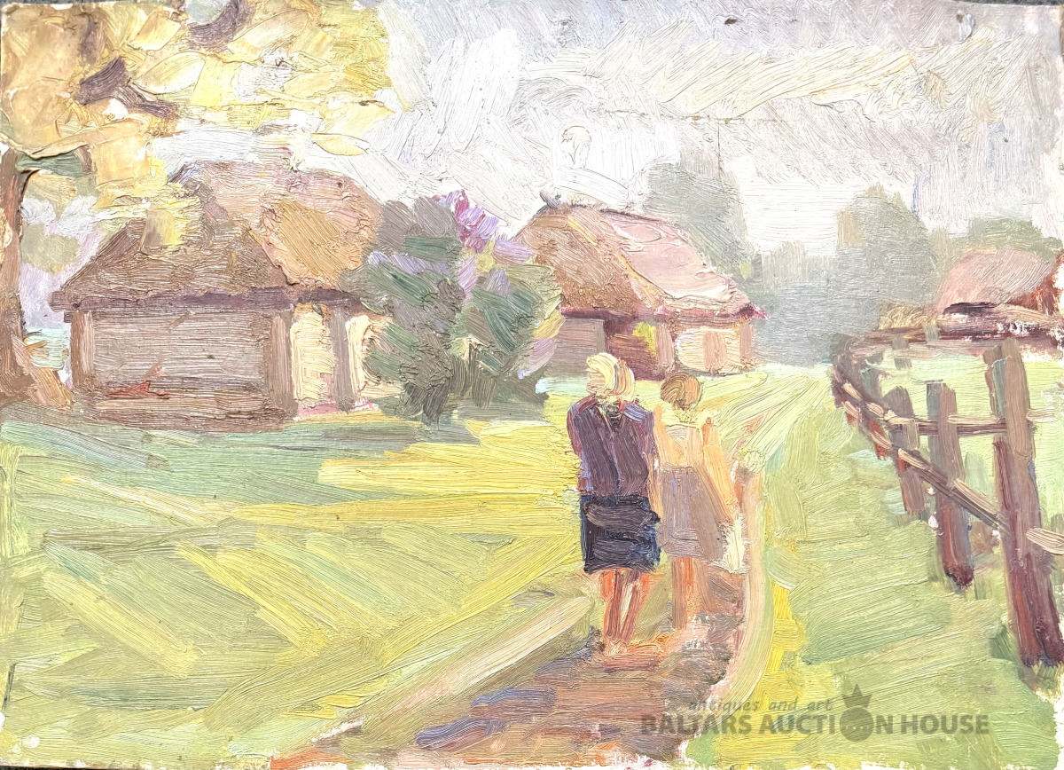 Lauku sēta. Kartons/ Eļļa. Autors nezināms. 35x48 cm.