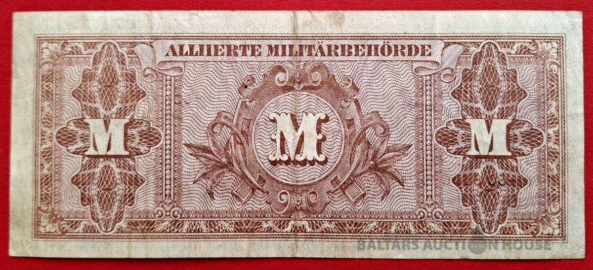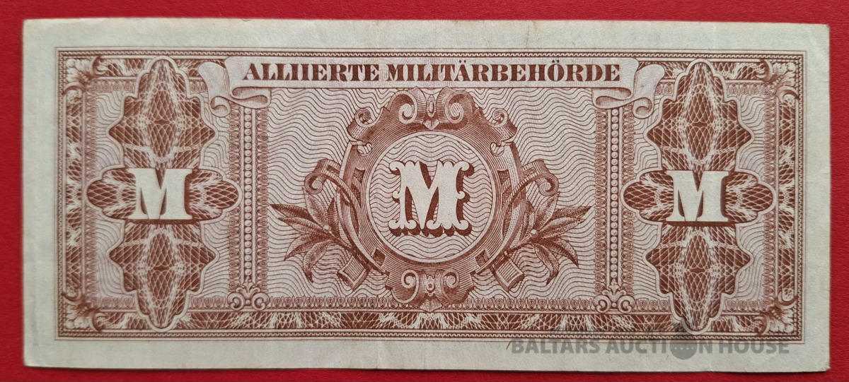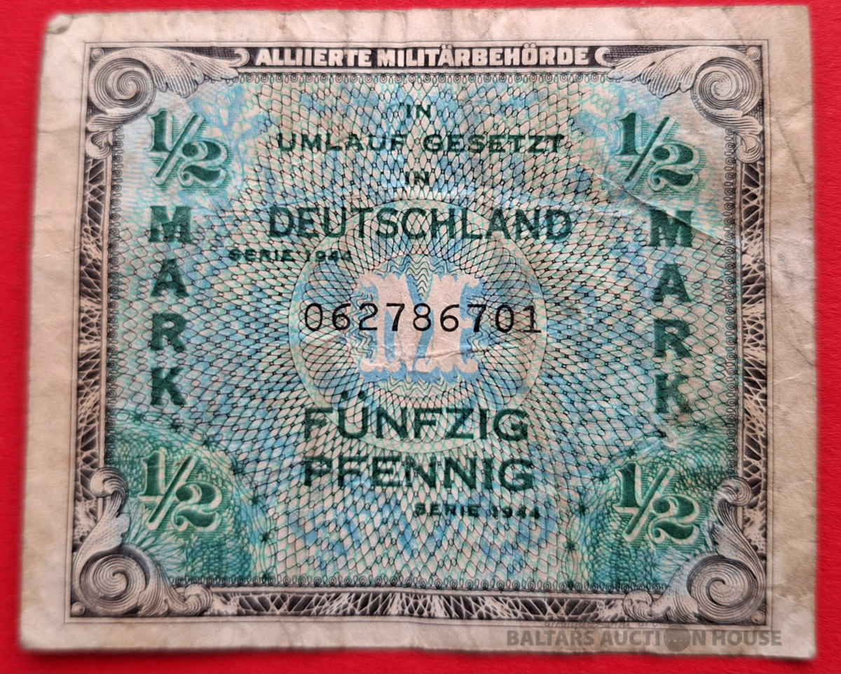 1/2 marka banknote no 1944. gada, ko izlaida sabiedroto okupācijas varas iestādes Vācijā. Šis ir kolekcionāra priekšmets, kas pazīstams kā kara valūta.