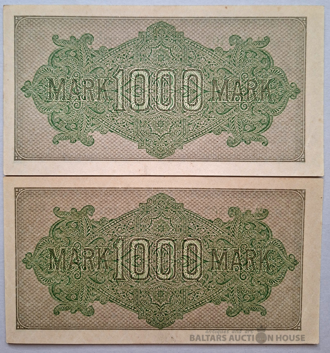 Divas 1000 marku banknotes, ko 1922. gadā izlaida Reihsbanka. Secīgi numuri. Stāvoklis!!!!