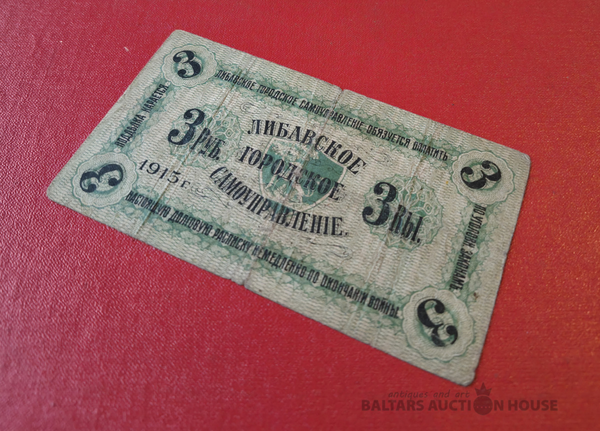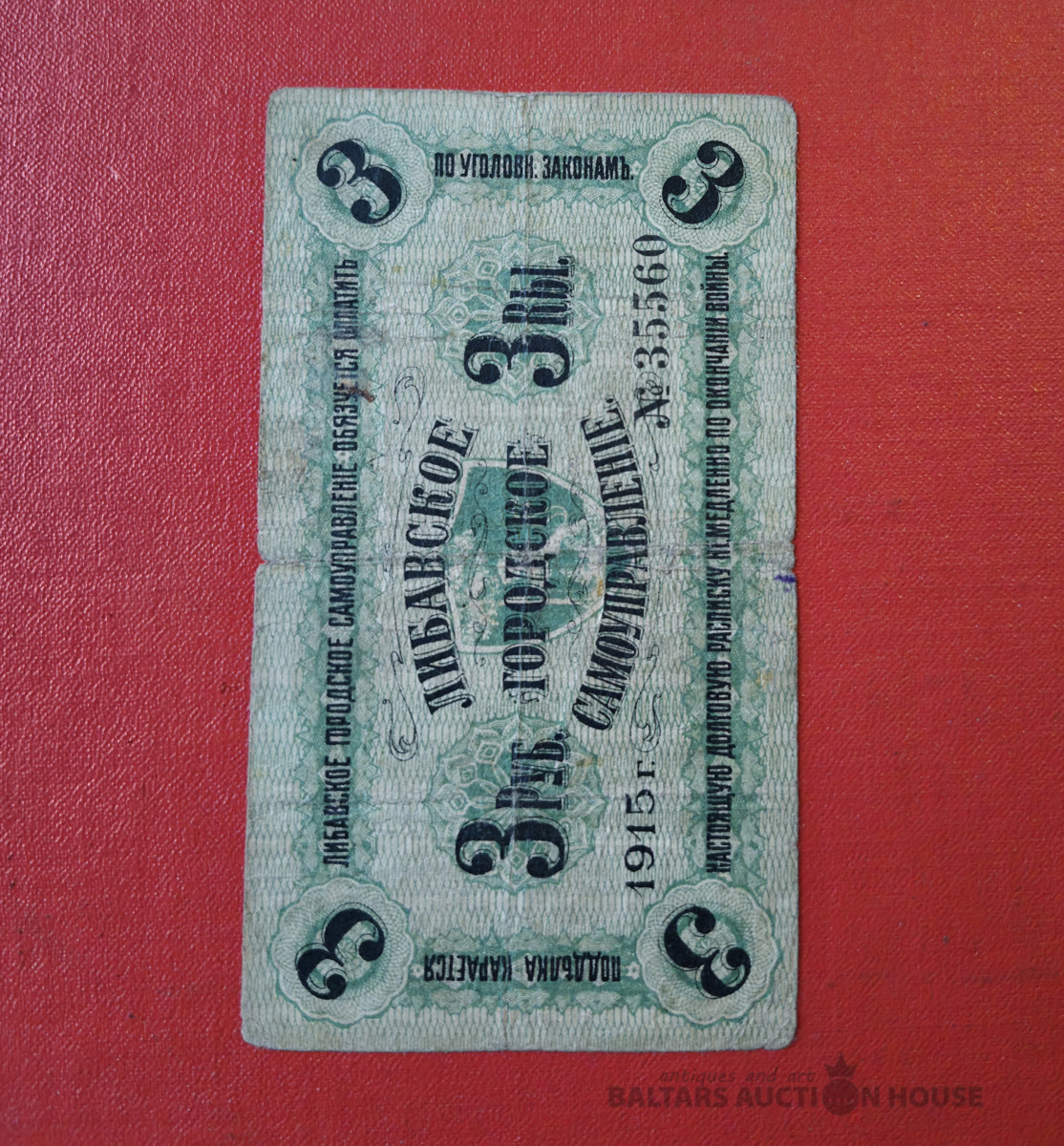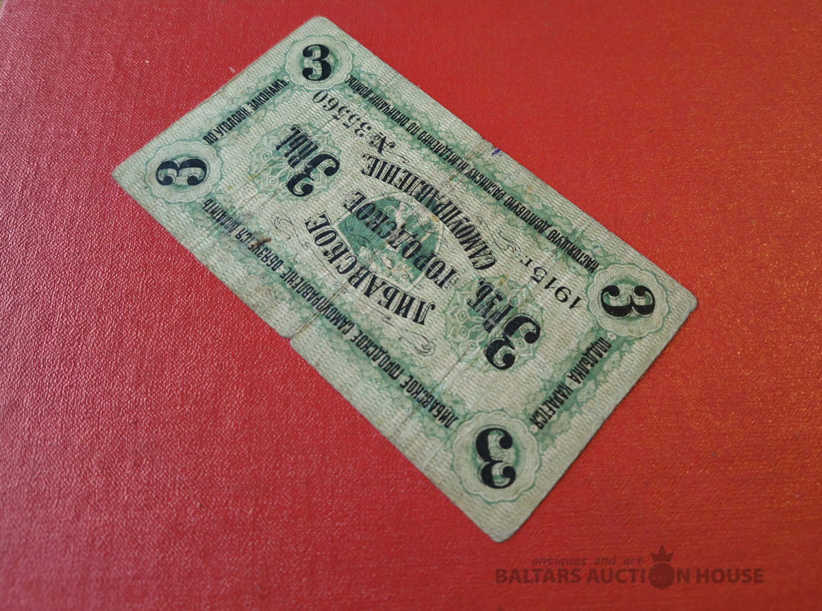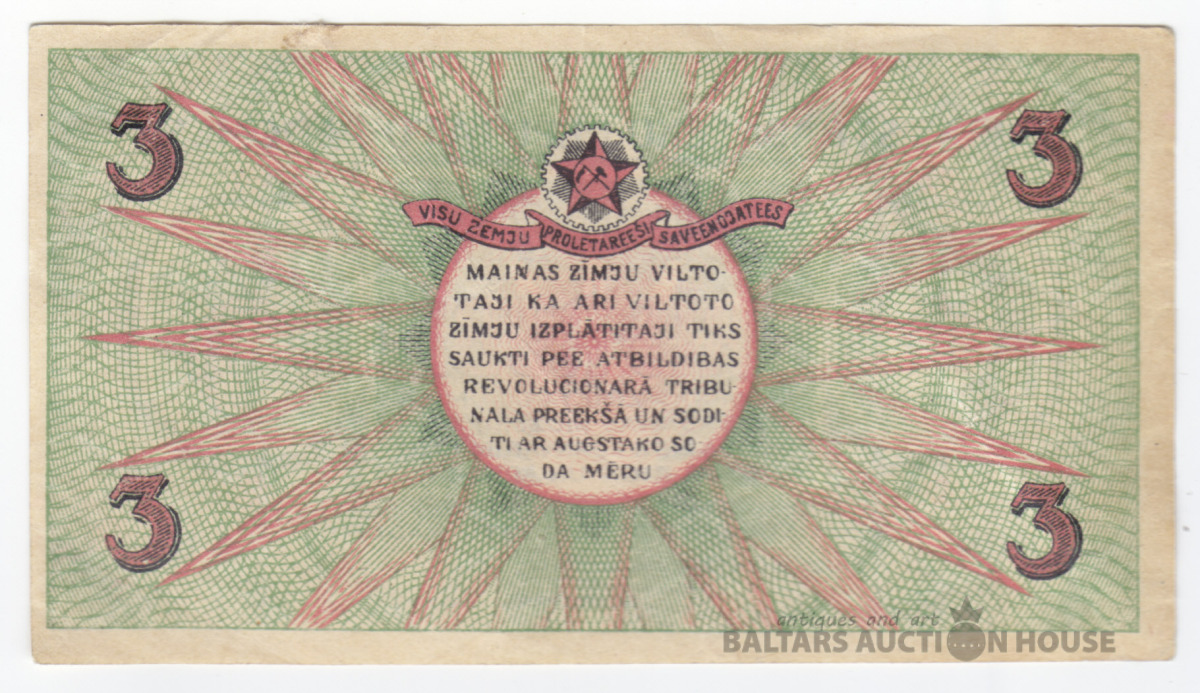 Banknote, Latvija 3 Rubli, Rīgas strādnieku deputātu padomes naudas zīme. aUNC