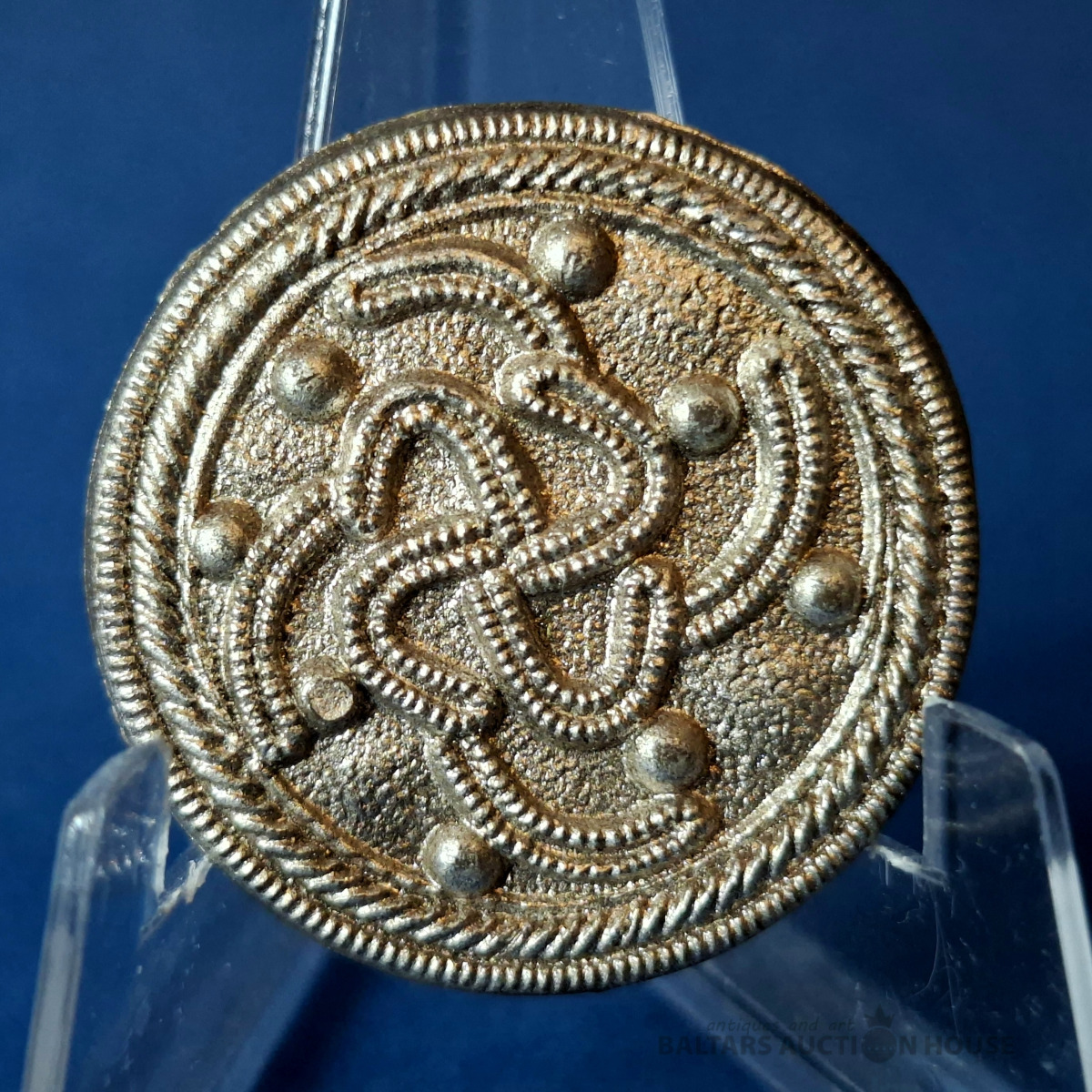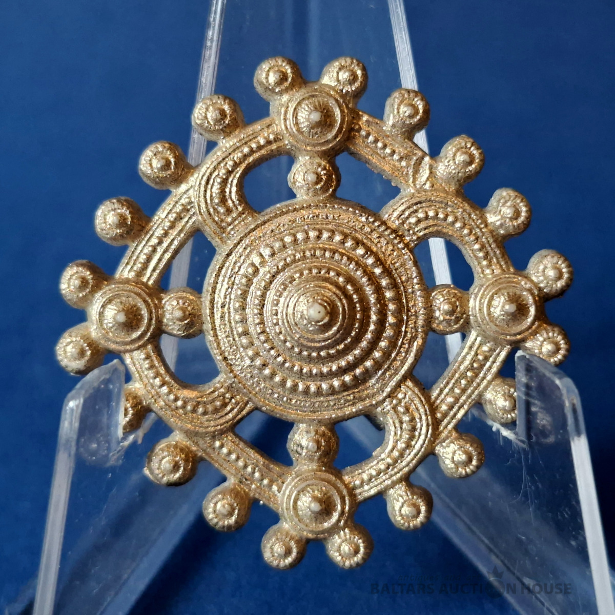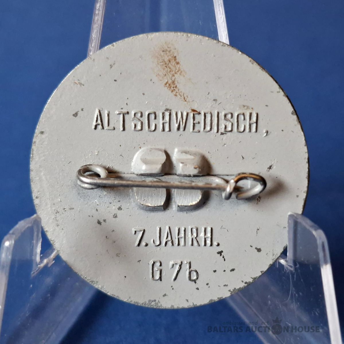 Oriģināla vācu kara ziedojuma nozīmīte no sērijas "Senās rotaslietas ar svastiku" - "Schmuck alter Kulturvölker mit "Hakenkreuz-Symbol" ziemas palīdzības programmai vācu tautai - WinterHilfsWerk - WHW. Šī "Ziemas palīdzības" nozīmīšu sērija tika izplatīta 1941.-1942. gada ziemā. Oficiāli izdota 1941. gada 27.-28. septembrī.