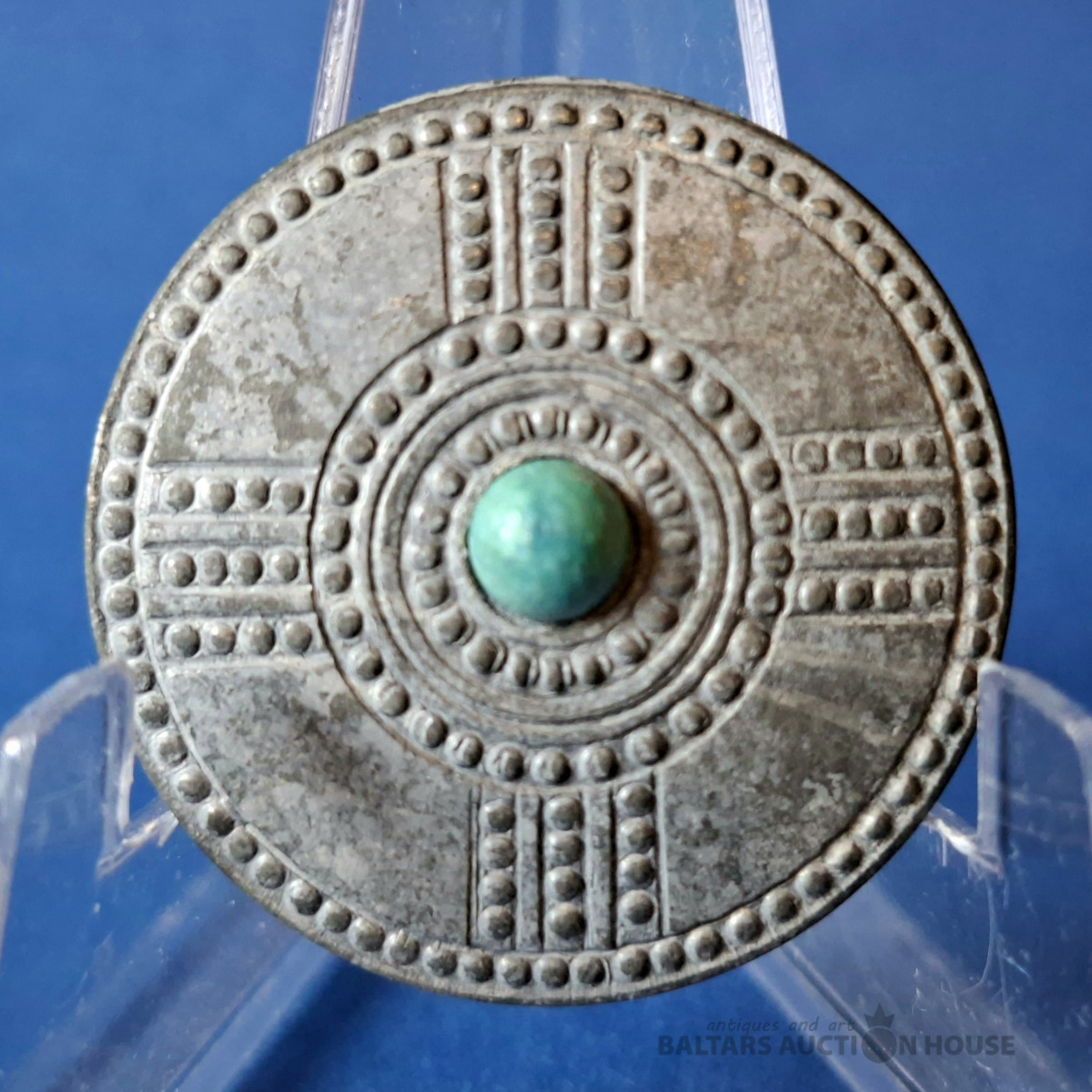 Vācu oriģinālā ziemas palīdzības nozīmīte, kas piederēja Vācijas Tautas kara ziedojumu programmai no sērijas "Senie artefakti ar svastikas simbolu" - "Schmuck alter Kulturvölker mit "Hakenkreuz-Symbol"" ļoti labā kolekcionējamā stāvoklī., Серия данных значков Древние артефакты со знаком свастики "Зимней Помощи" распространялась зимой 1941-1942 года. Официальный выпуск 27-28 сентября 1941года. Серия состояла из десяти значков.