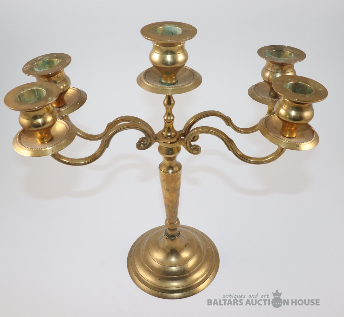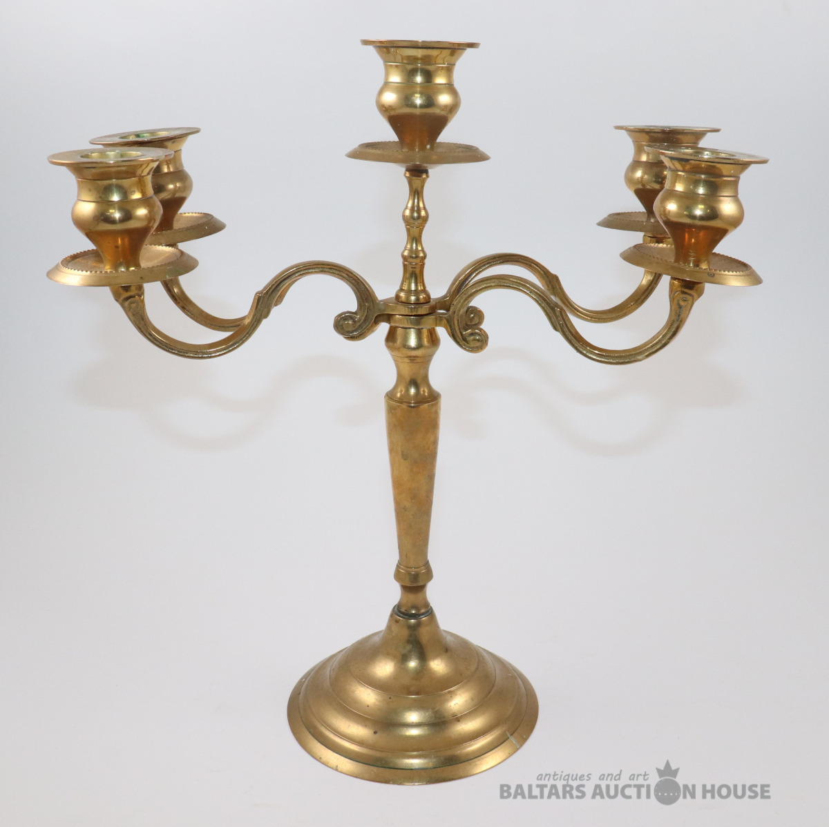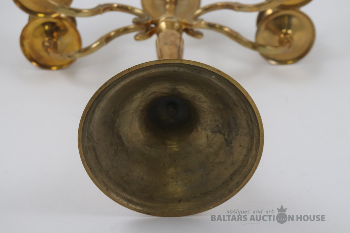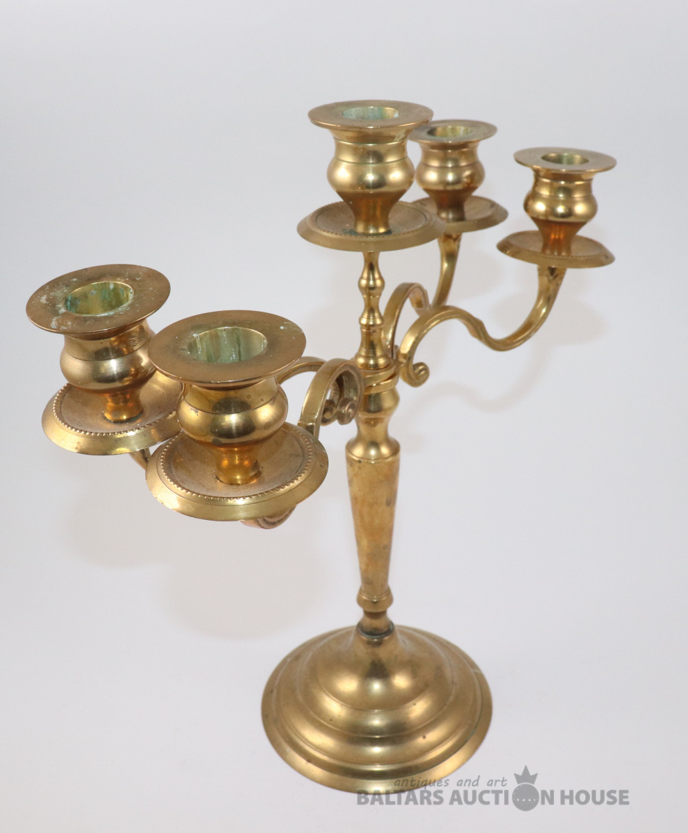 Piecu zaru svečturis. Misiņš, h=29,5 cm. Retro.