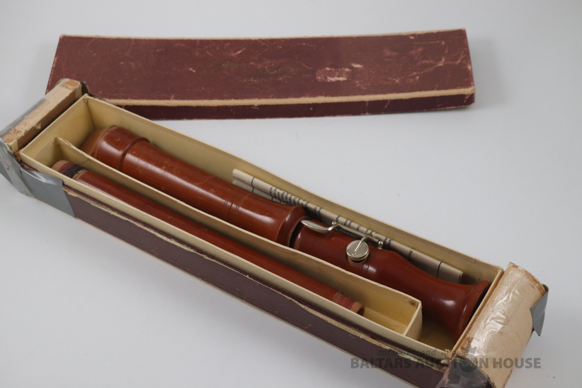 Antīka flauta no 1950./60. gadiem, Vācijas Demokrātiskā Republika, oriģinālajā kastītē.