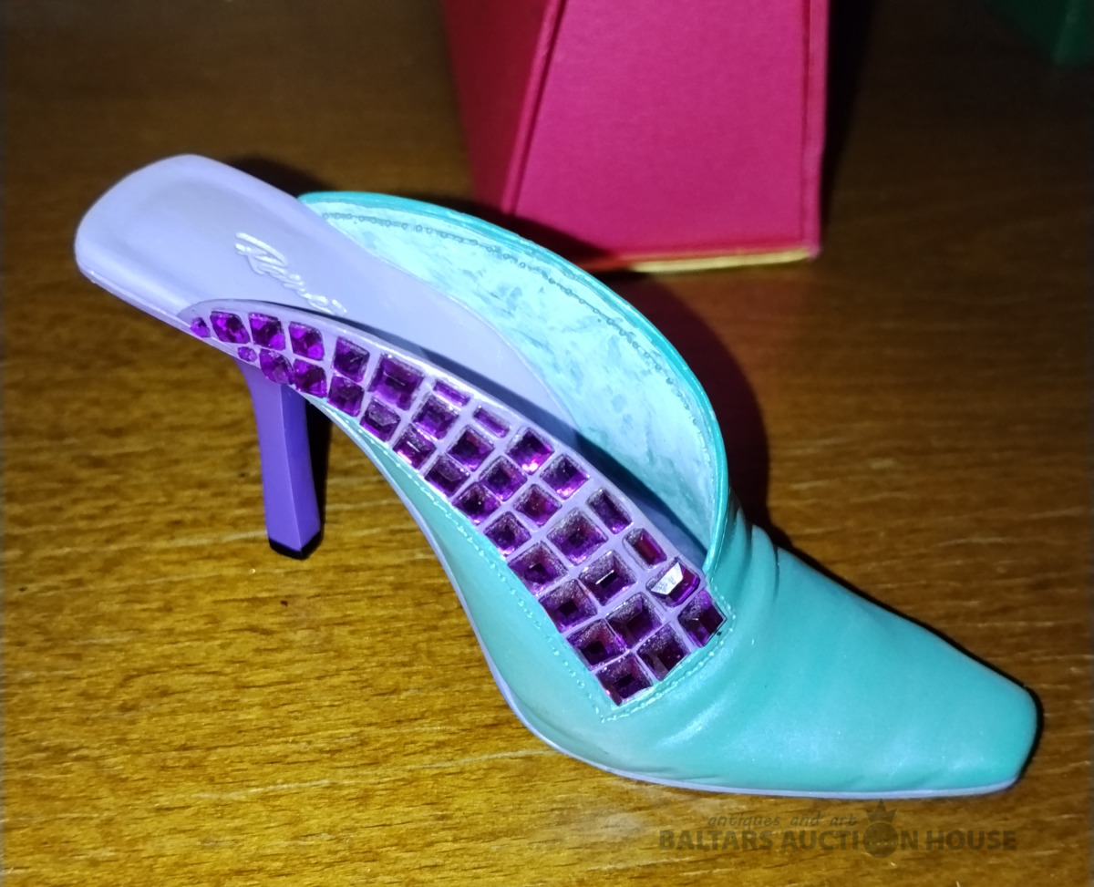 Kolekcijas -Just the right shoe by "Raine" mini shoe. 2002.gads perfekta stāvoklī. Meitenu Dekora prieksmets. Standarta izmêrs H~4 * 8 cm. Kopā roza kastīte.